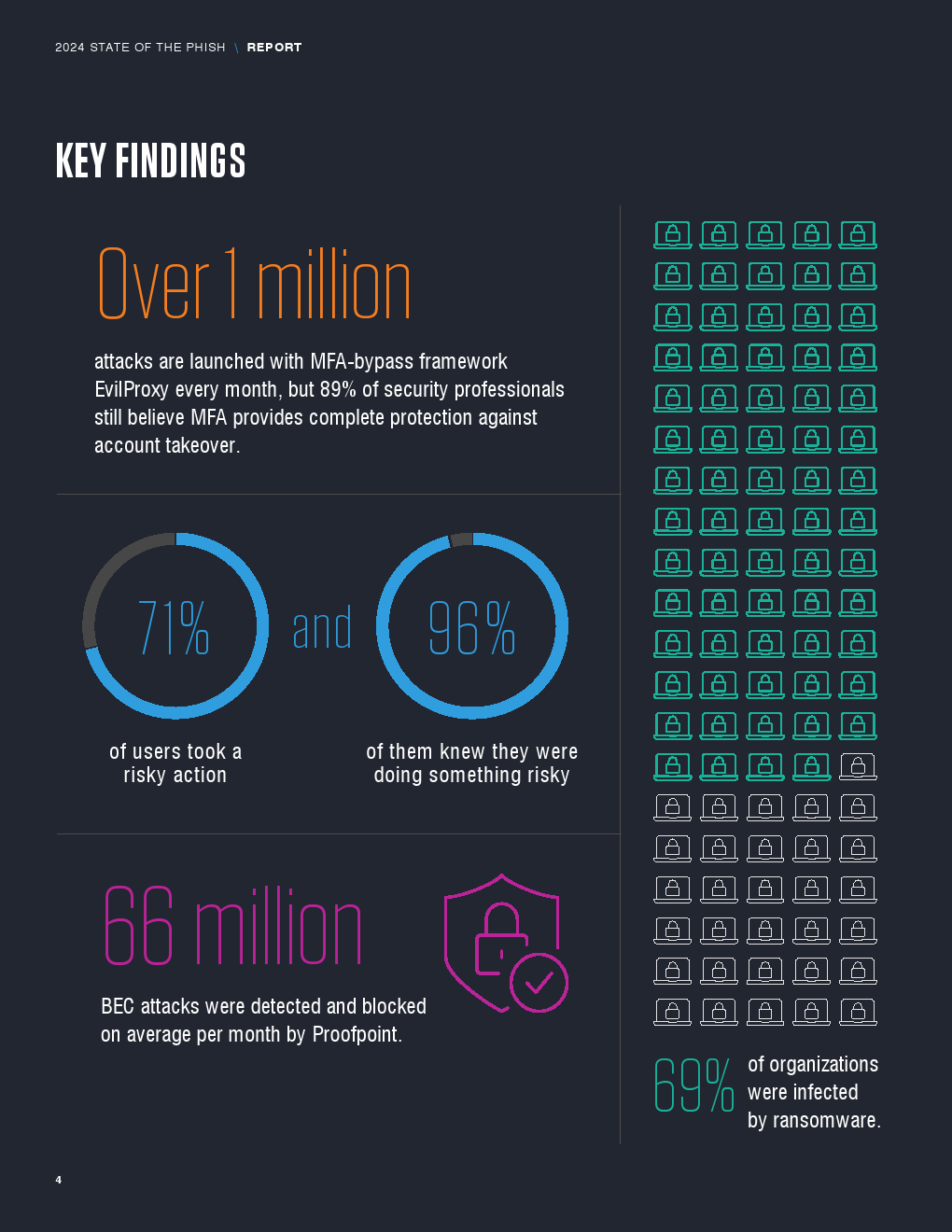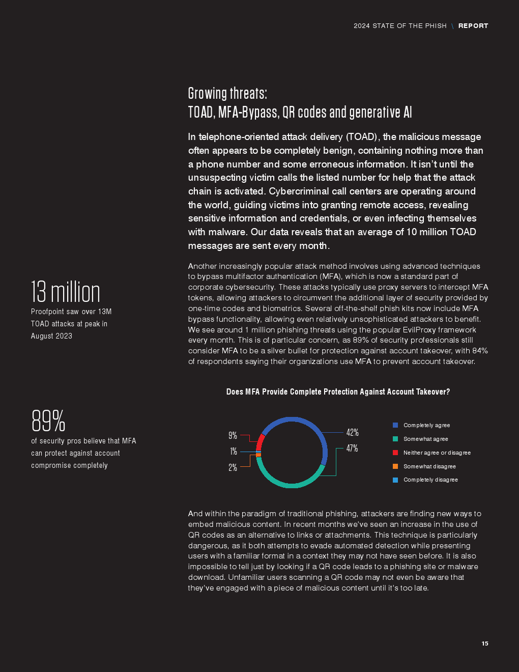 Proofpoint发布了“2024年网络钓鱼报告”。每月有超过100万次攻击是通过MFA绕过frameworkEvilProxy发起的,但89%的安全专业人士仍然认为MFA提供了针对帐户接管的完整保护。