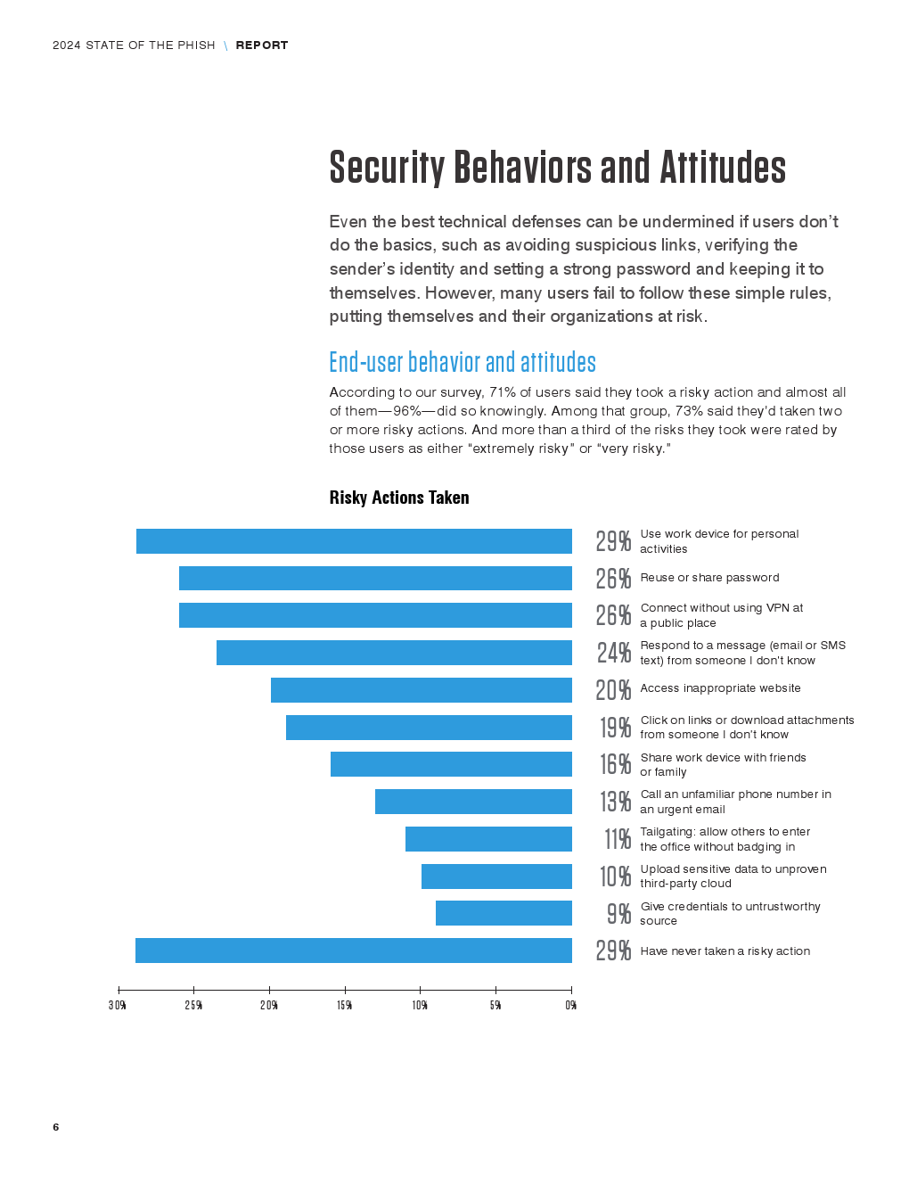 58%的用户采取了有风险的行为,这些行为会使他们容易受到普通社会工程策略的攻击。