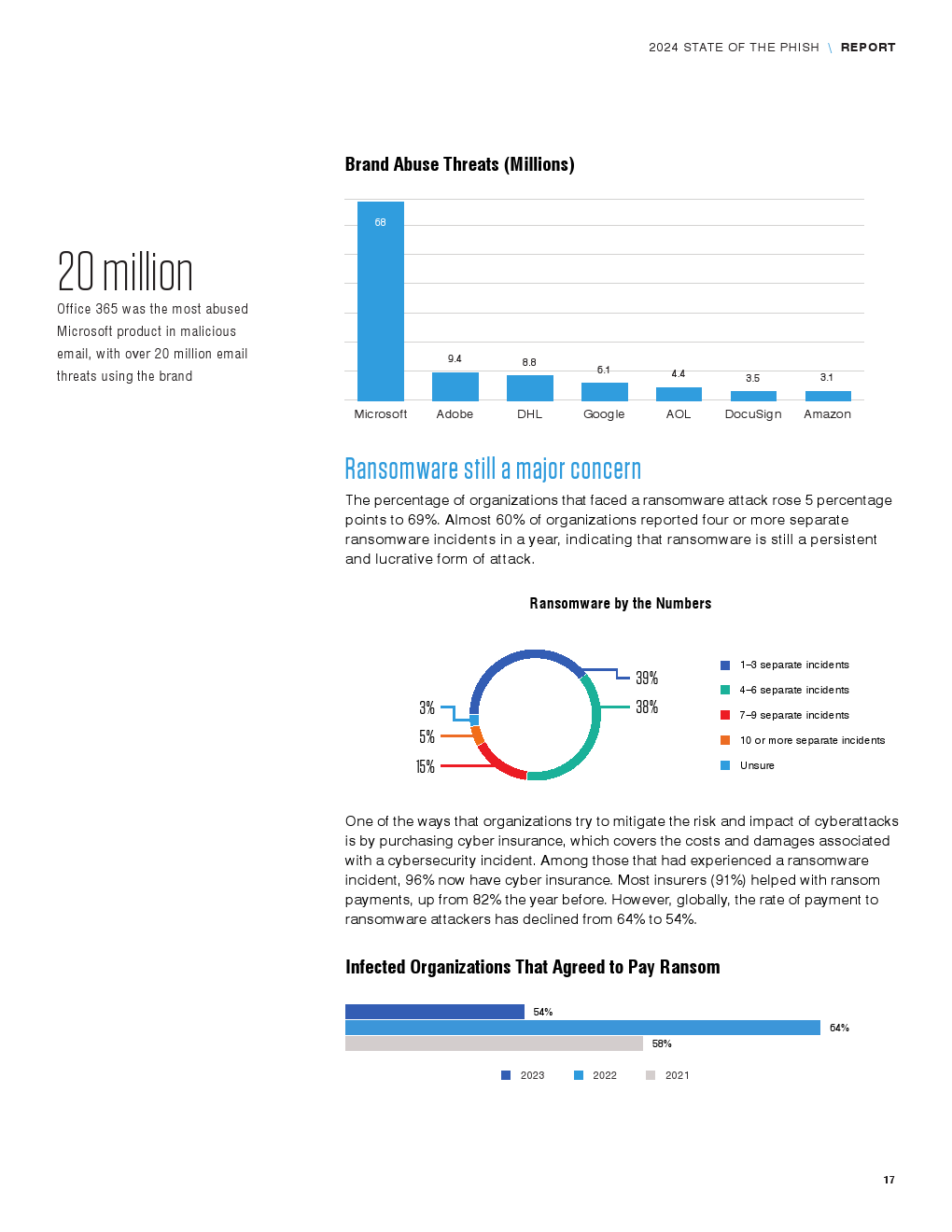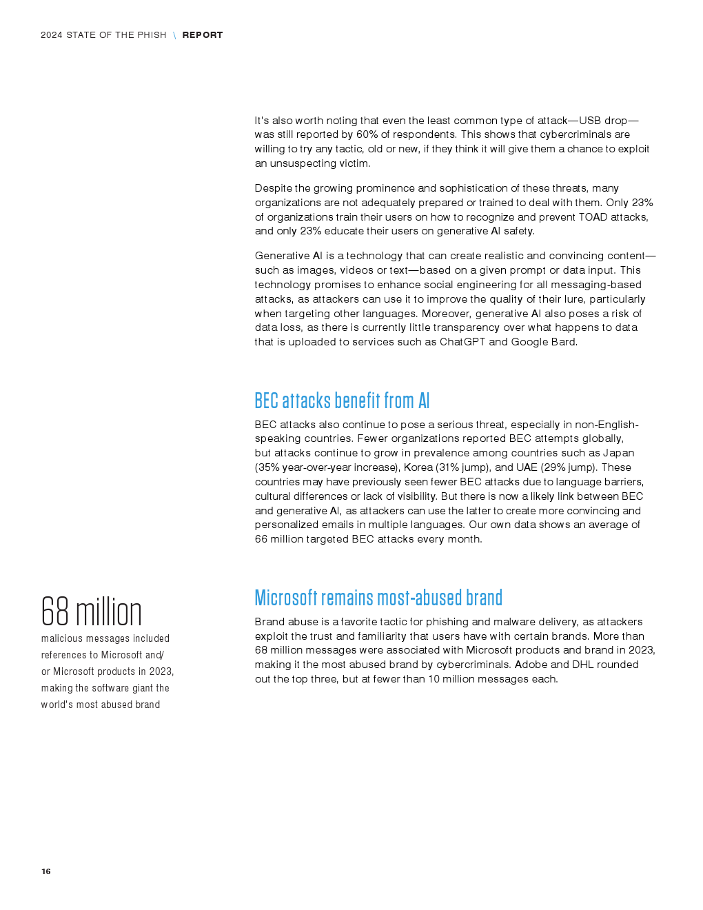 微软仍然是被滥用最多的品牌,有6800万条恶意信息与该品牌或其产品有关。