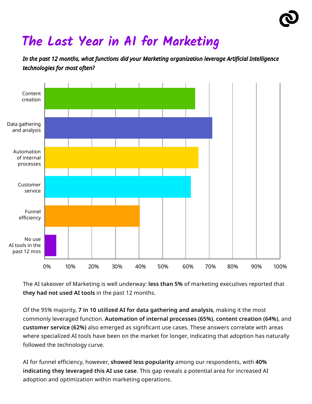 根据Conversica最近的一项研究,在过去的一年里,营销人员最常利用人工智能进行数据收集和分析、内部流程自动化和内容创建。