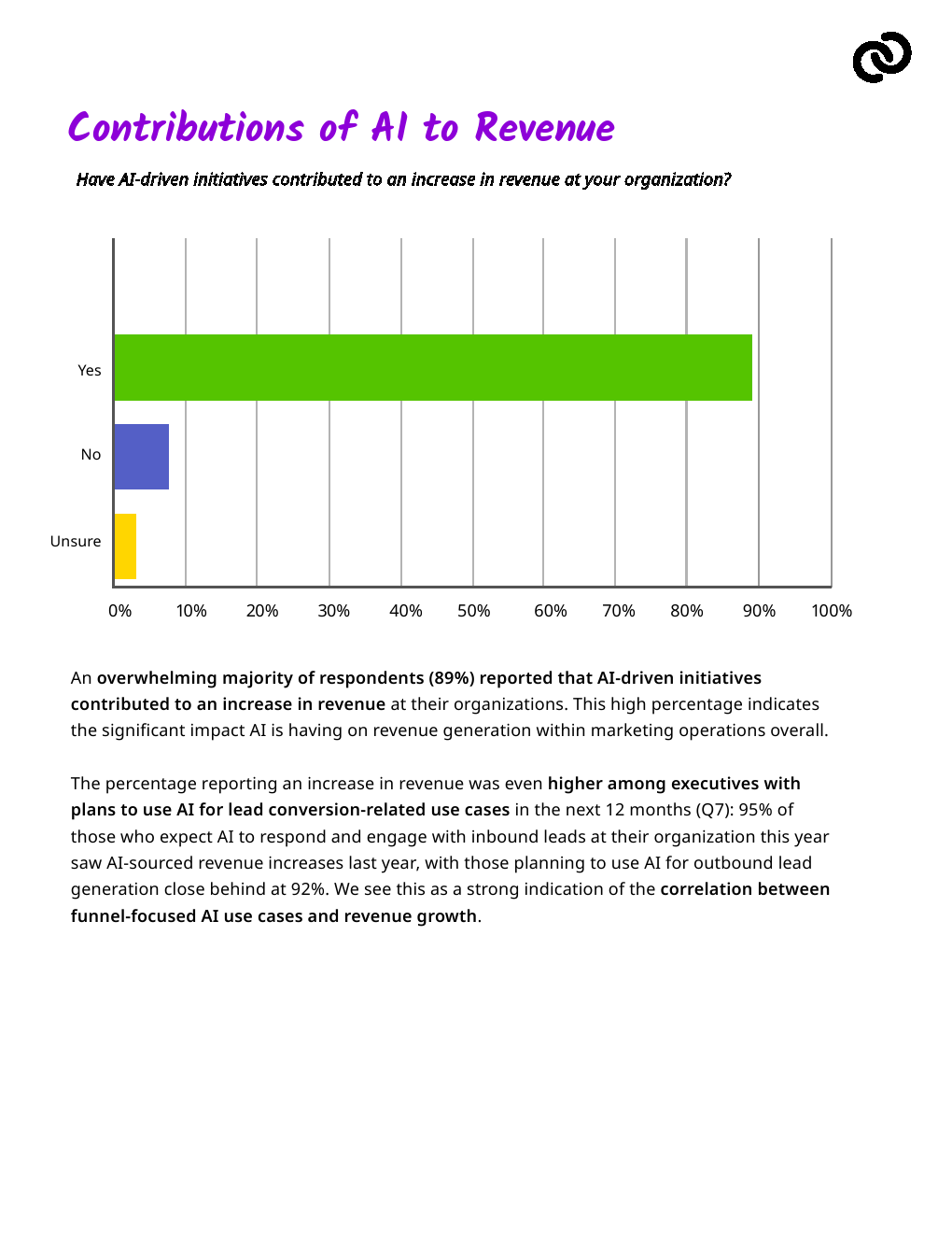 89%的受访者表示,人工智能驱动的计划为其组织的收入增长做出了贡献。