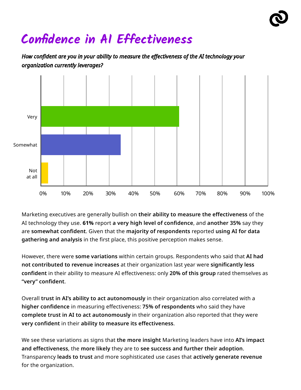 约61%的受访者对自己衡量所使用人工智能技术有效性的能力非常有信心。
