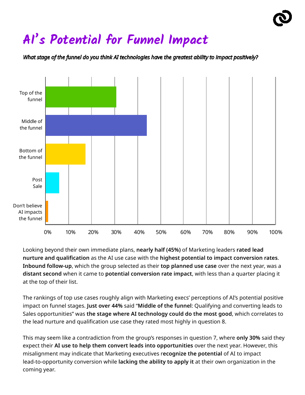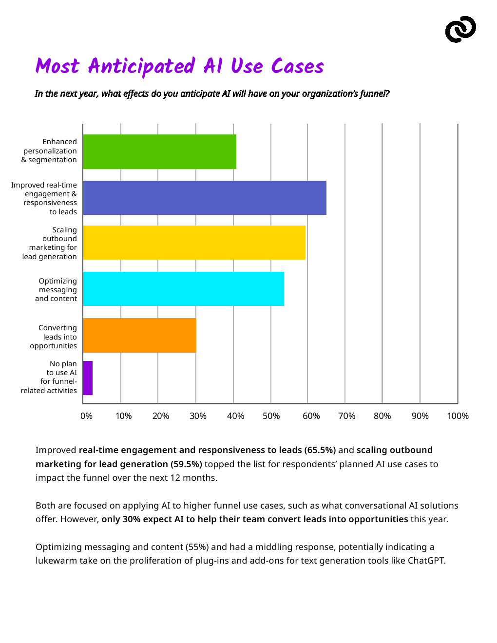 分析师指出,这些适用于更高的漏斗用例,只有3/10的受访者希望人工智能能帮助他们将潜在客户转化为机会。