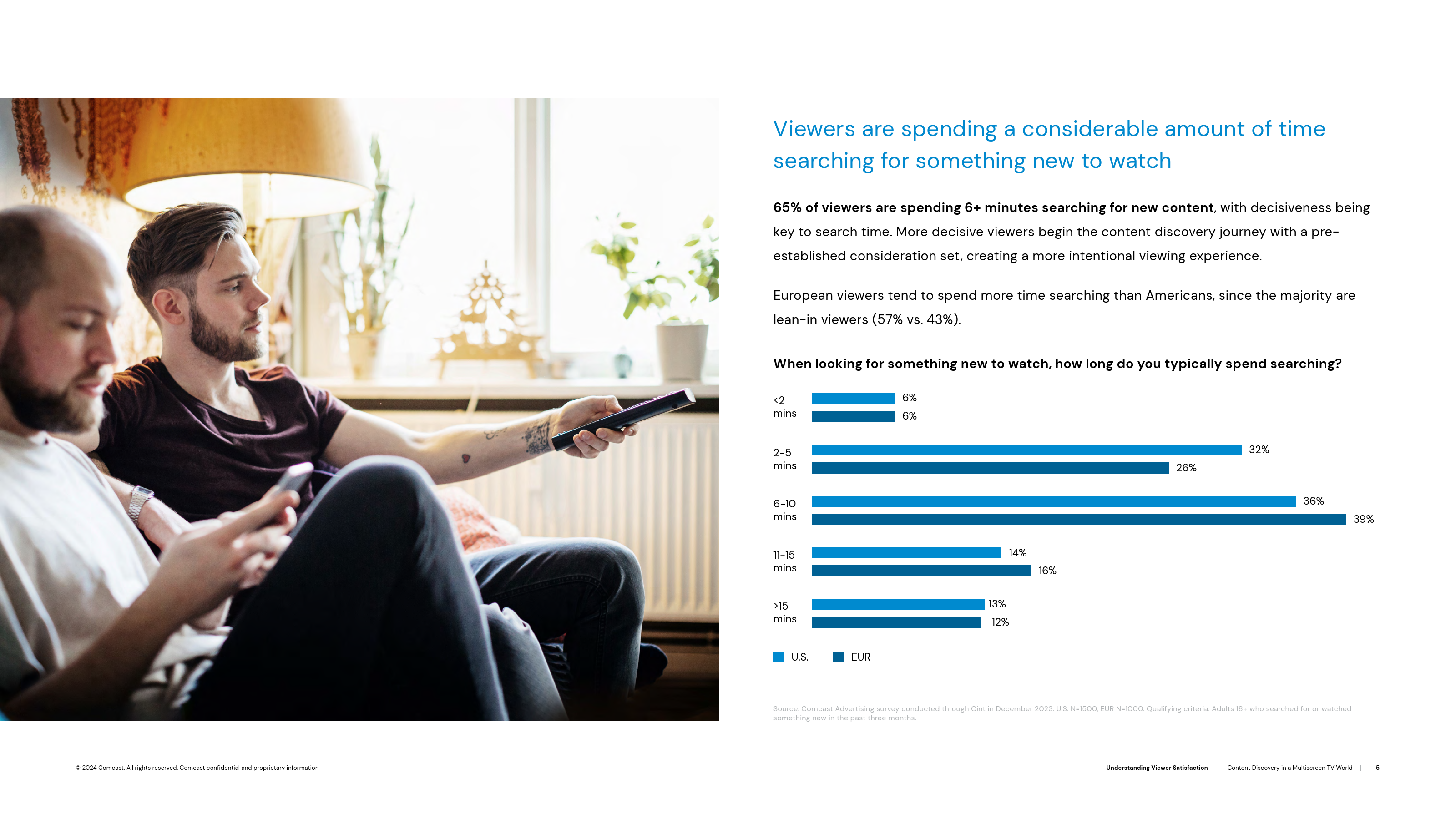 调查了1500名在过去3个月里搜索或观看过新内容的美国成年人后发现,51%的观众对寻找新内容的困难感到沮丧,并导致他们重看一些内容。此外,超过60%的人在寻找新节目时要花5分钟以上的时间搜索。