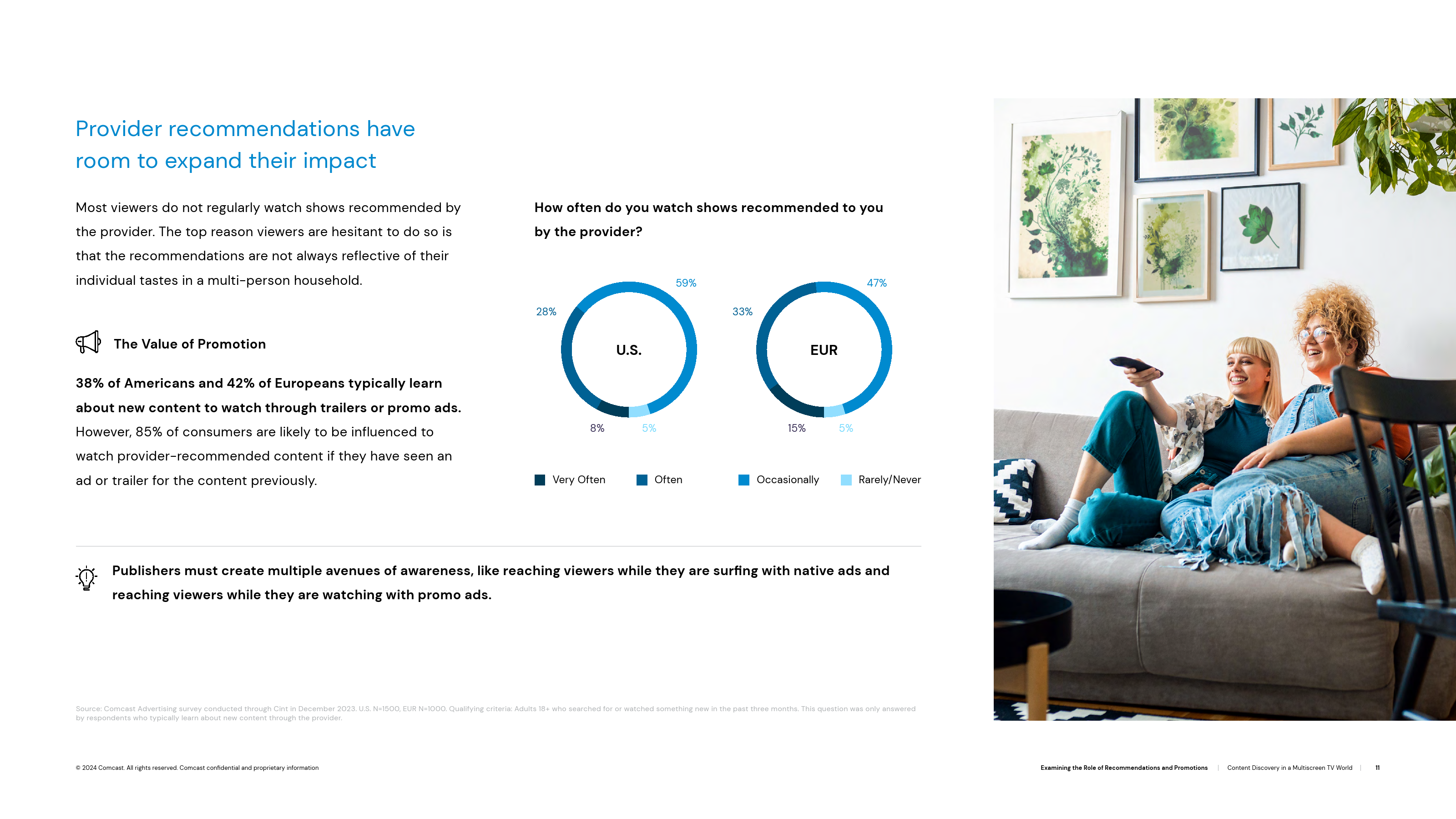 虽然这是一个内容发现的渠道,但它并不是一个关键渠道,因为只有36%的受访者表示他们有时(8%)或经常(28%)观看提供商推荐给他们的节目。