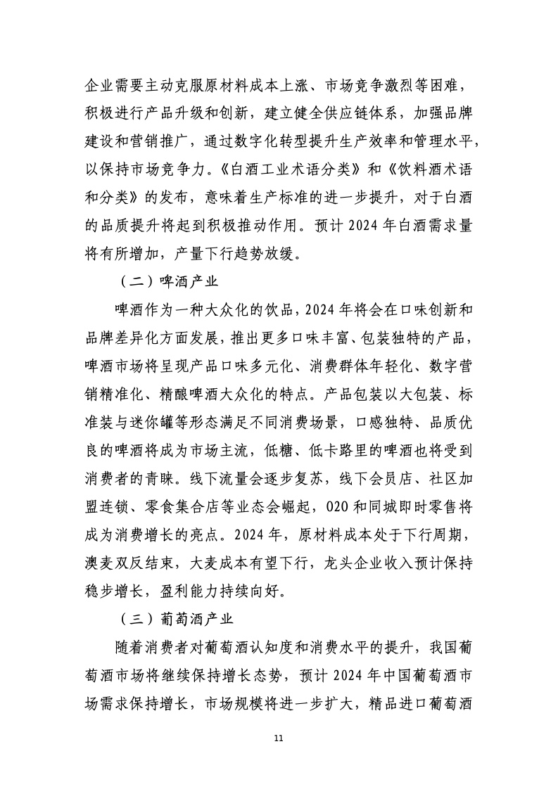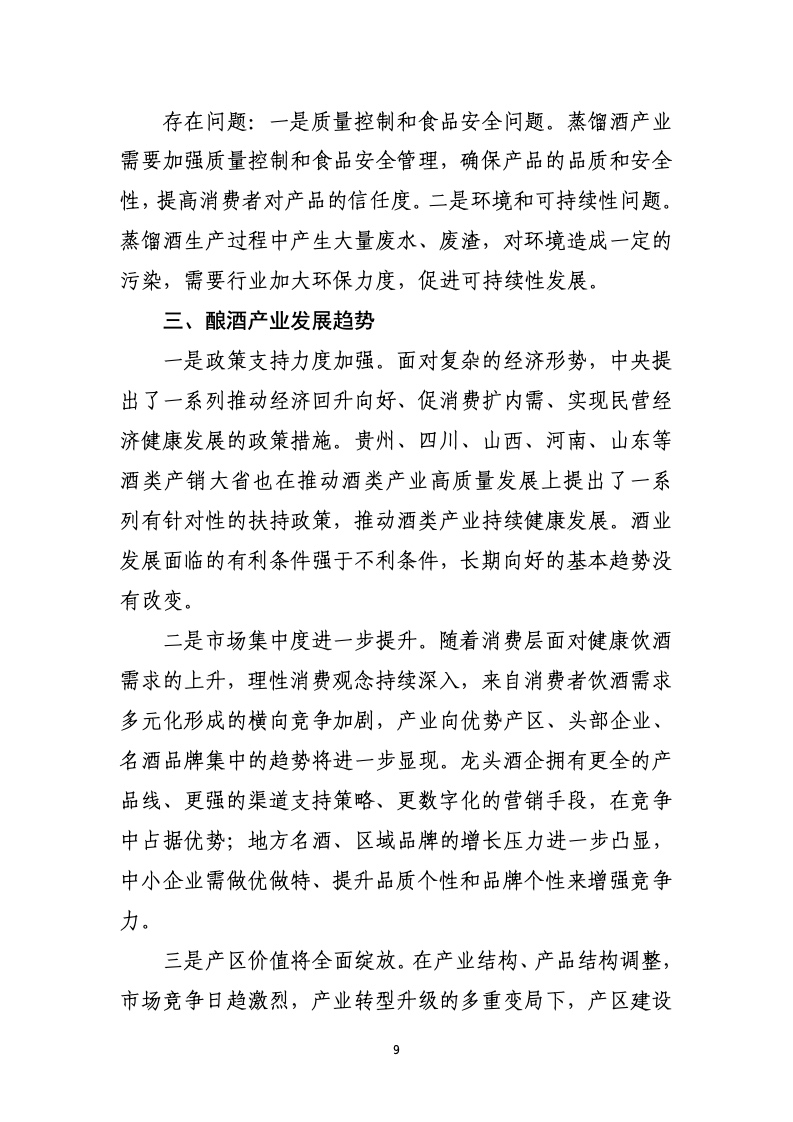 产业集中趋势更加明显。酒类产业仍处于调整转型期,高端产品竞争格局趋于固化,中低价格产品竞争加剧。名酒产区、名酒企业、名酒品牌市场占有率进一步提升,区域品牌增长压力进一步凸显。市场竞争日趋激烈,产业分化更为明显,产业集中度提升。
