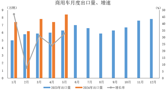 2024年5月,商用车出口8.4万辆,环比增长12.6%,同比增长32.7%。
