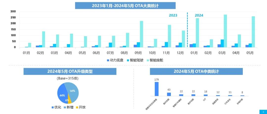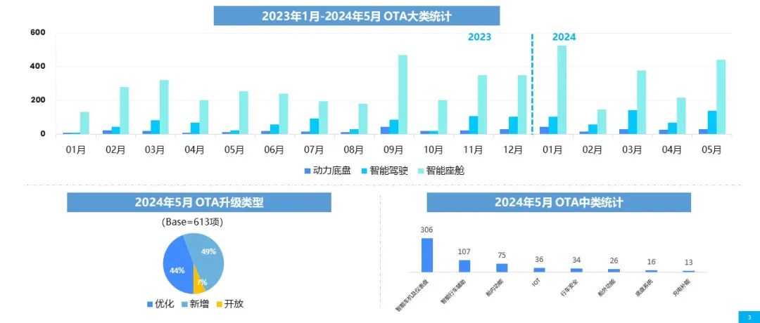 2024年5月,行业共计更新613项功能(上月304项),较上月大幅上升。本月升级的品牌多达19个,恰逢端午节假期,车企密集推送产品升级体验。