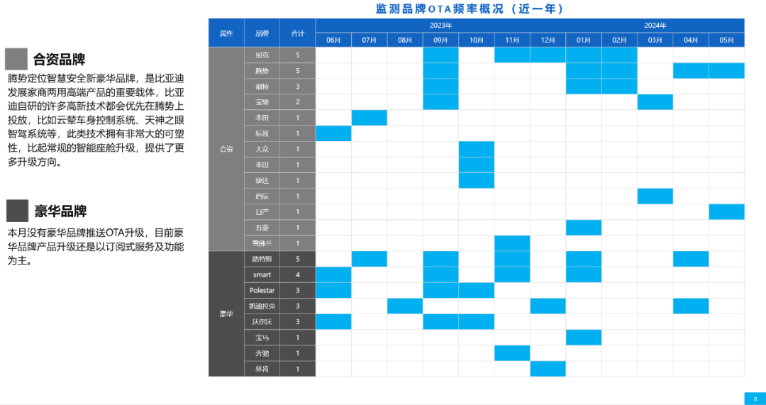 OTA月报,是以全市场OTA升级信息为基础,通过智见OTA平台,进行解析测评、专家解说、车主反馈、数据分析等模块,梳理出的全面行业OTA监测报告(本报告为简约版)。