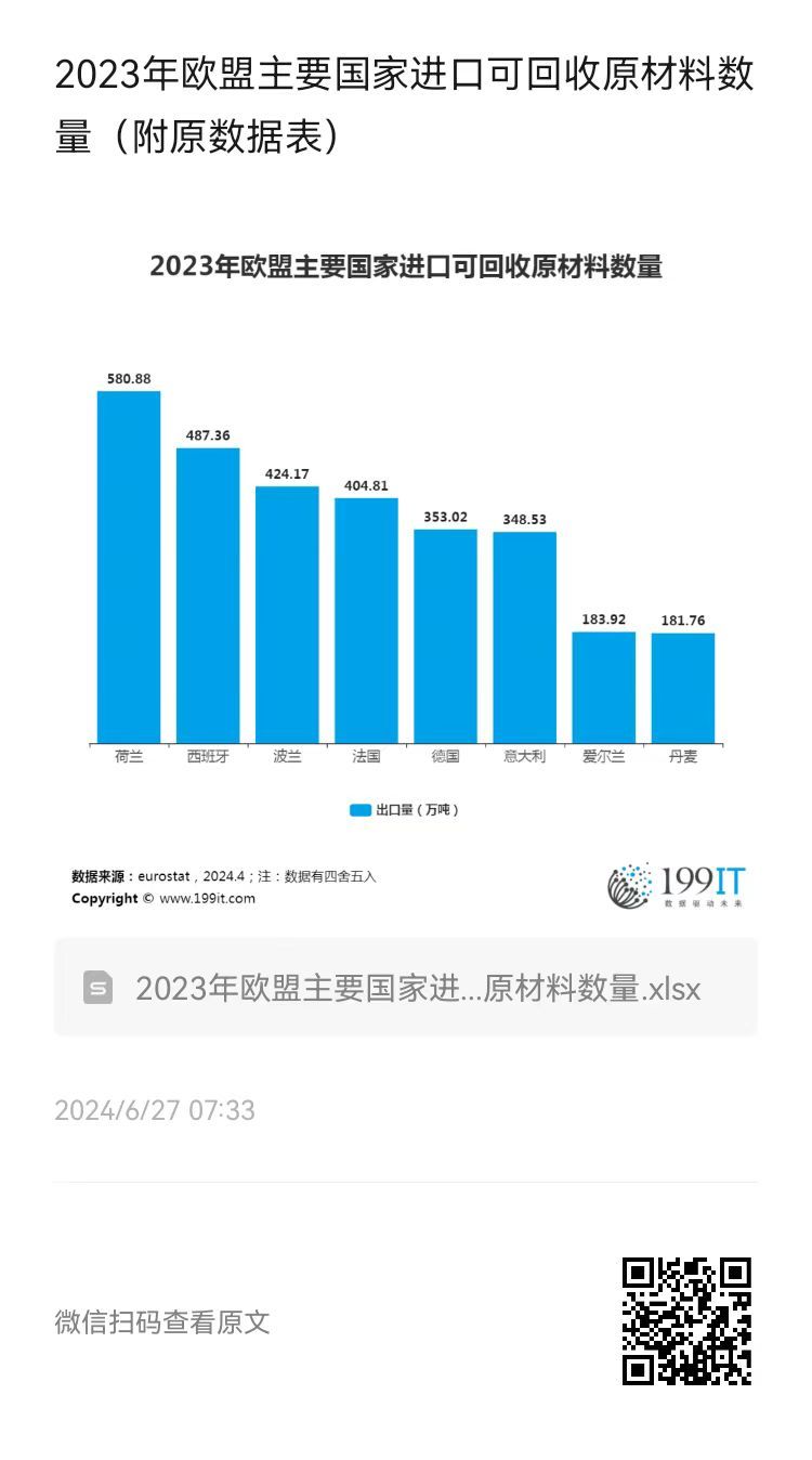 2023年欧盟主要国家进口可回收原材料数量(附原数据表) ​​​