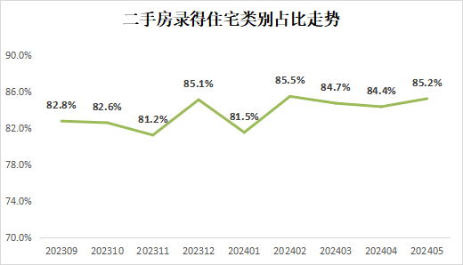 另据统计,二手房住宅类别成交占比上升,5月二手房住宅类别录得量占比为85.2%,较上月上升0.8个百分点。