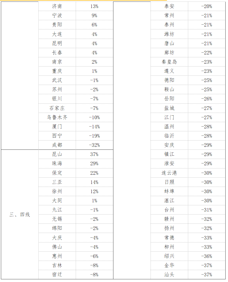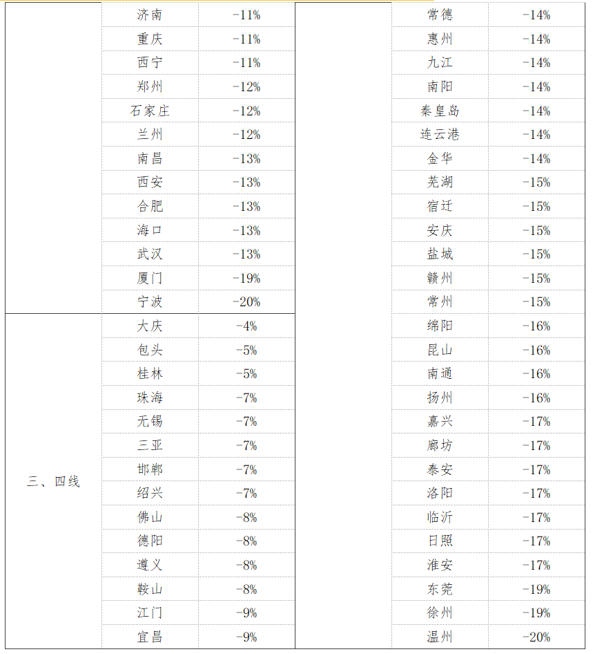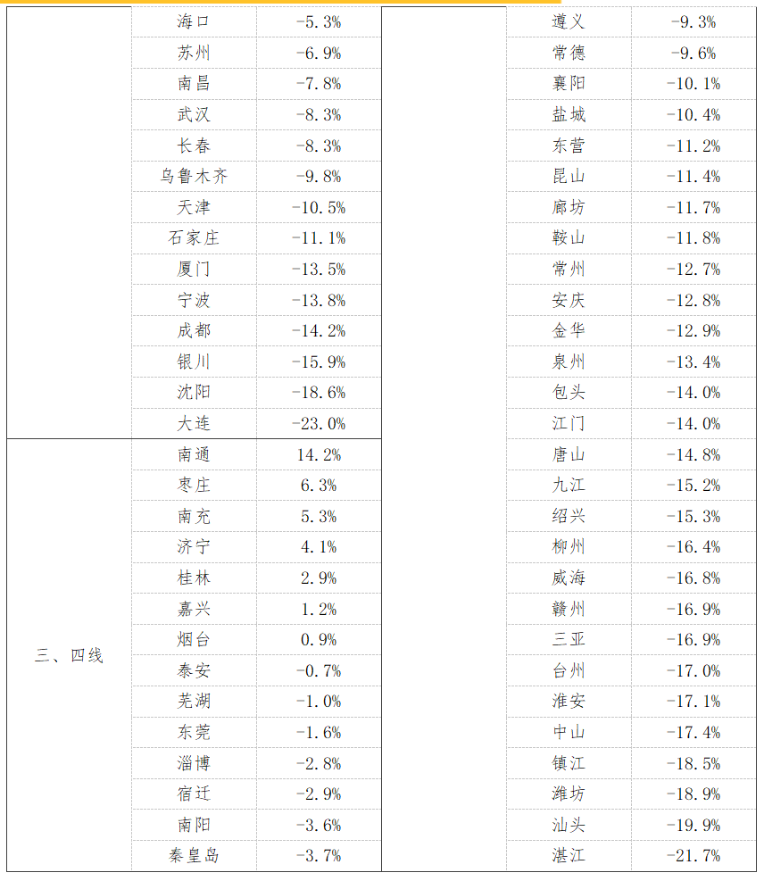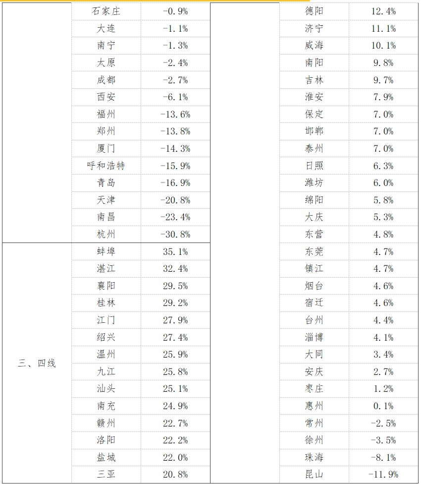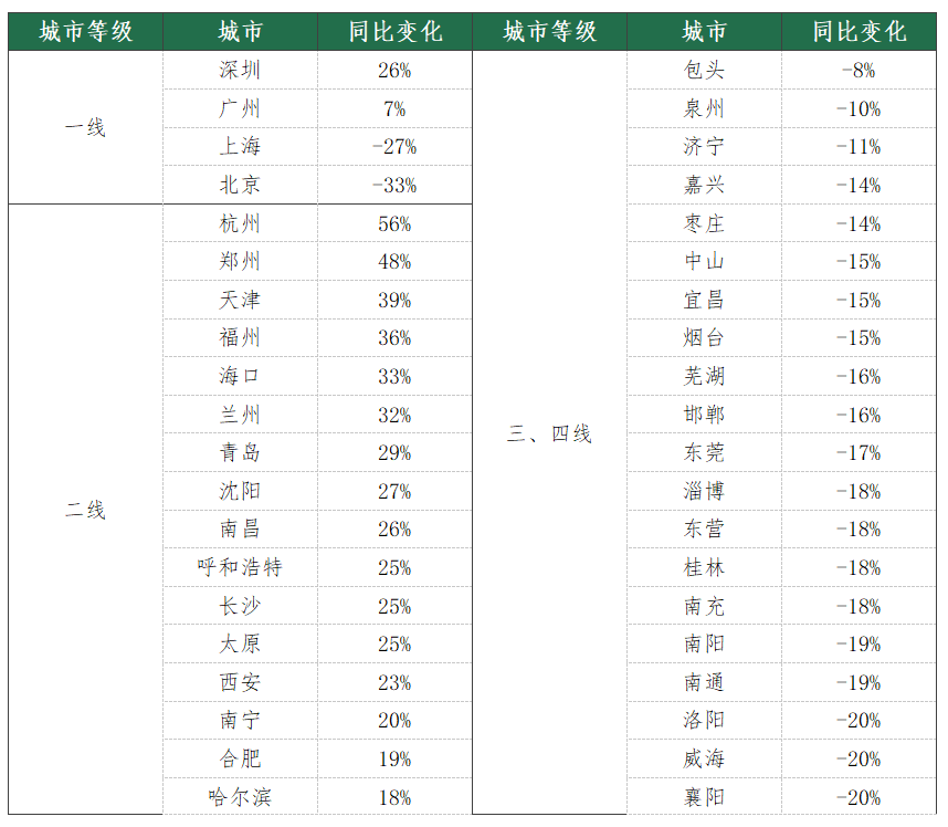 3、百城挂牌量同比变化排名