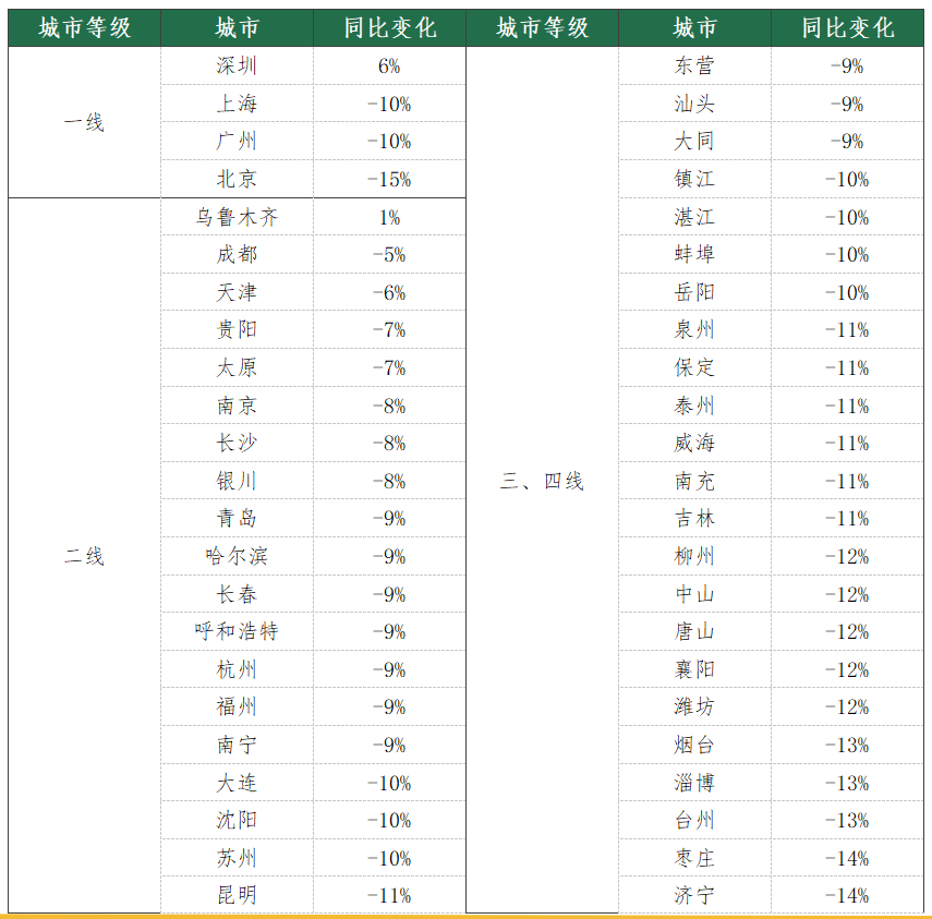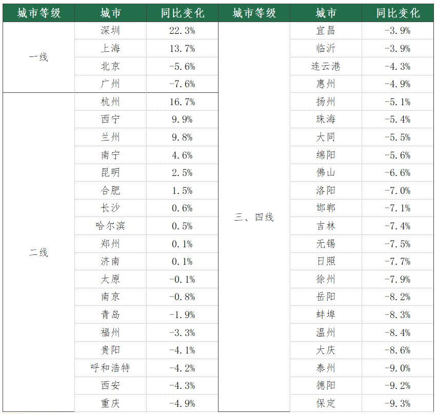 3、百城二手房挂牌均价同比变化