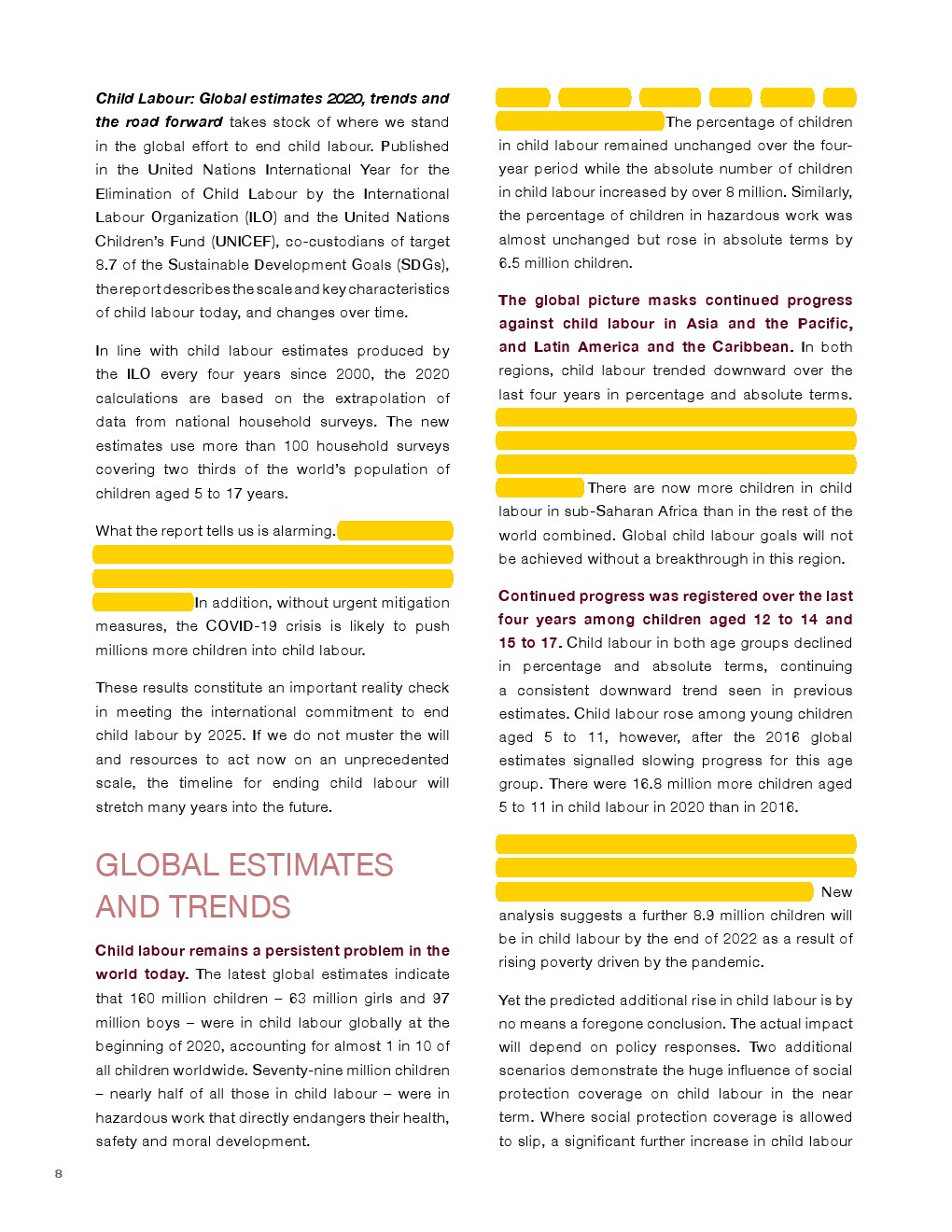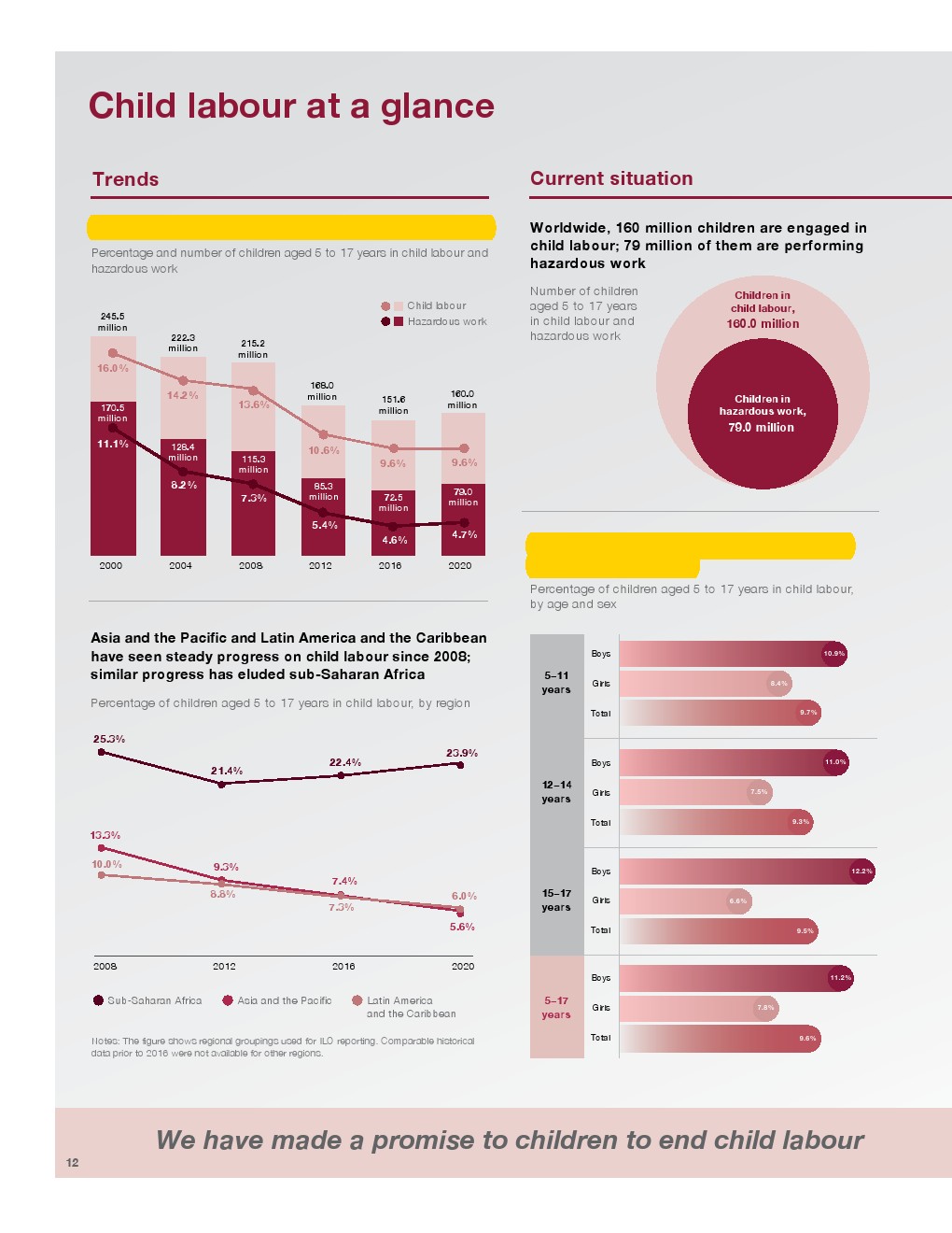 联合国劳工组织发布了最新的“童工报告”,评估了全球消除童工工作的现状。国际劳工组织(ILO)和联合国儿童基金会(UNICEF)是可持续发展目标(SDG)具体目标8.7的共同监管人,该报告在联合国消除童工国际年发布,描述了当今童工的规模和主要特征,以及随时间的变化。