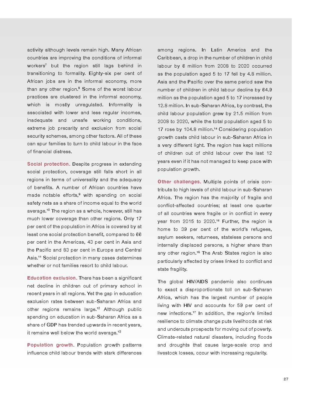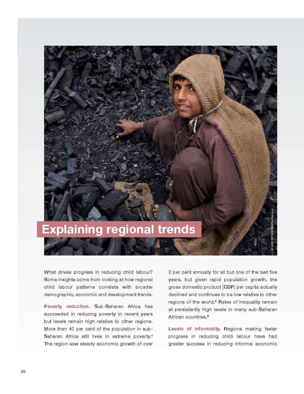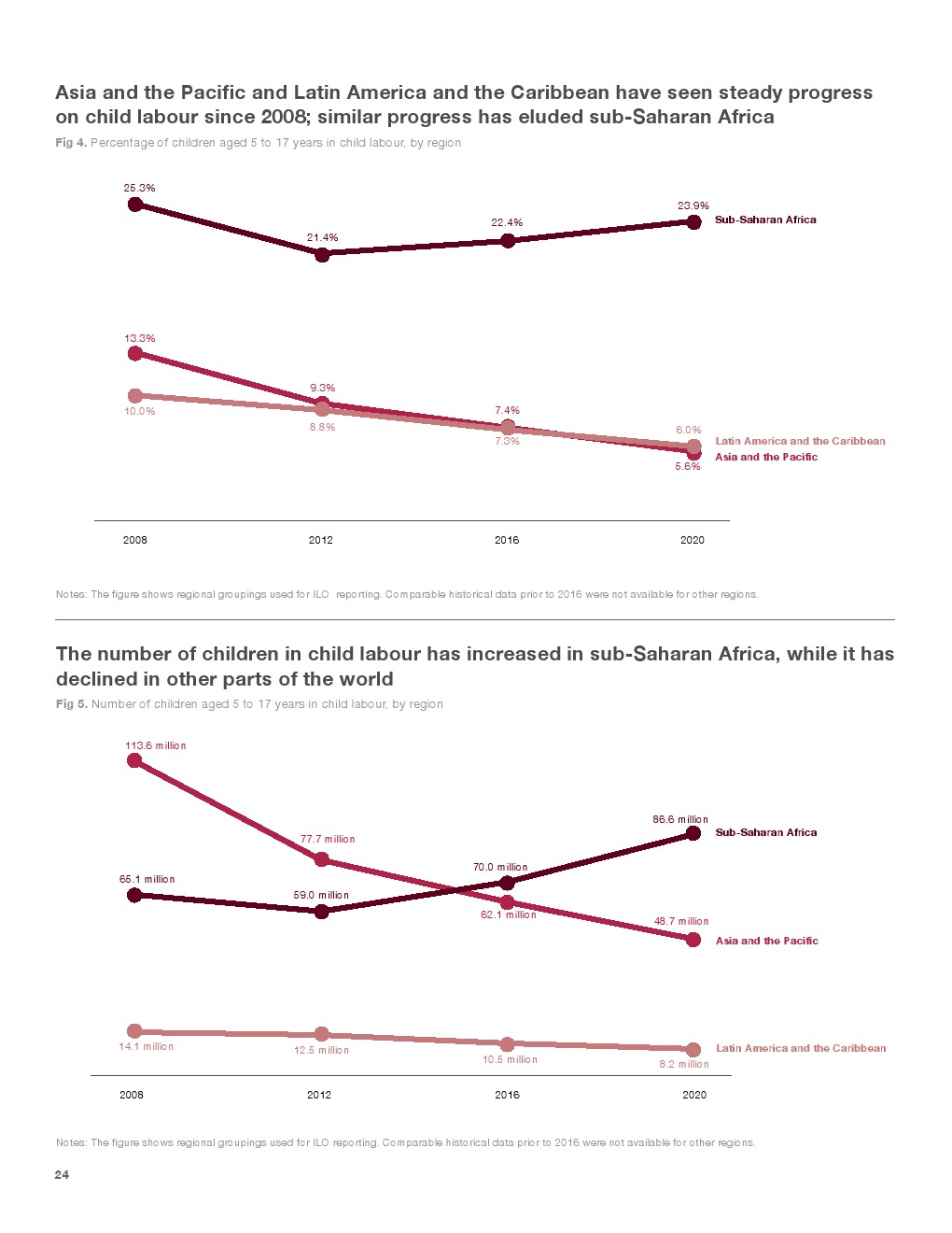 全球形势掩盖了亚洲和太平洋地区以及拉丁美洲和加勒比地区在打击童工方面取得的持续进展。在这两个地区,童工的百分比和绝对值在过去四年中呈下降趋势。