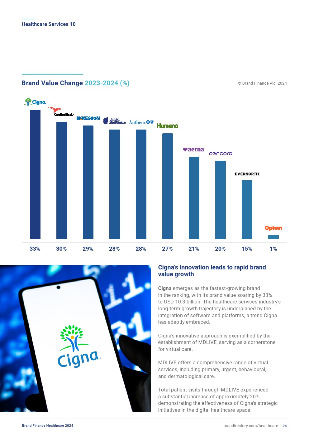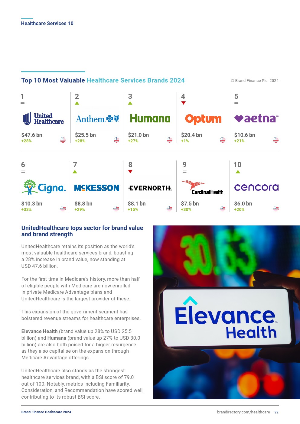 Elevance Health(品牌价值增长28%,达到255亿美元)和Humana(品牌价值增长27%,达到300亿美元)也都准备好了更大的复苏。