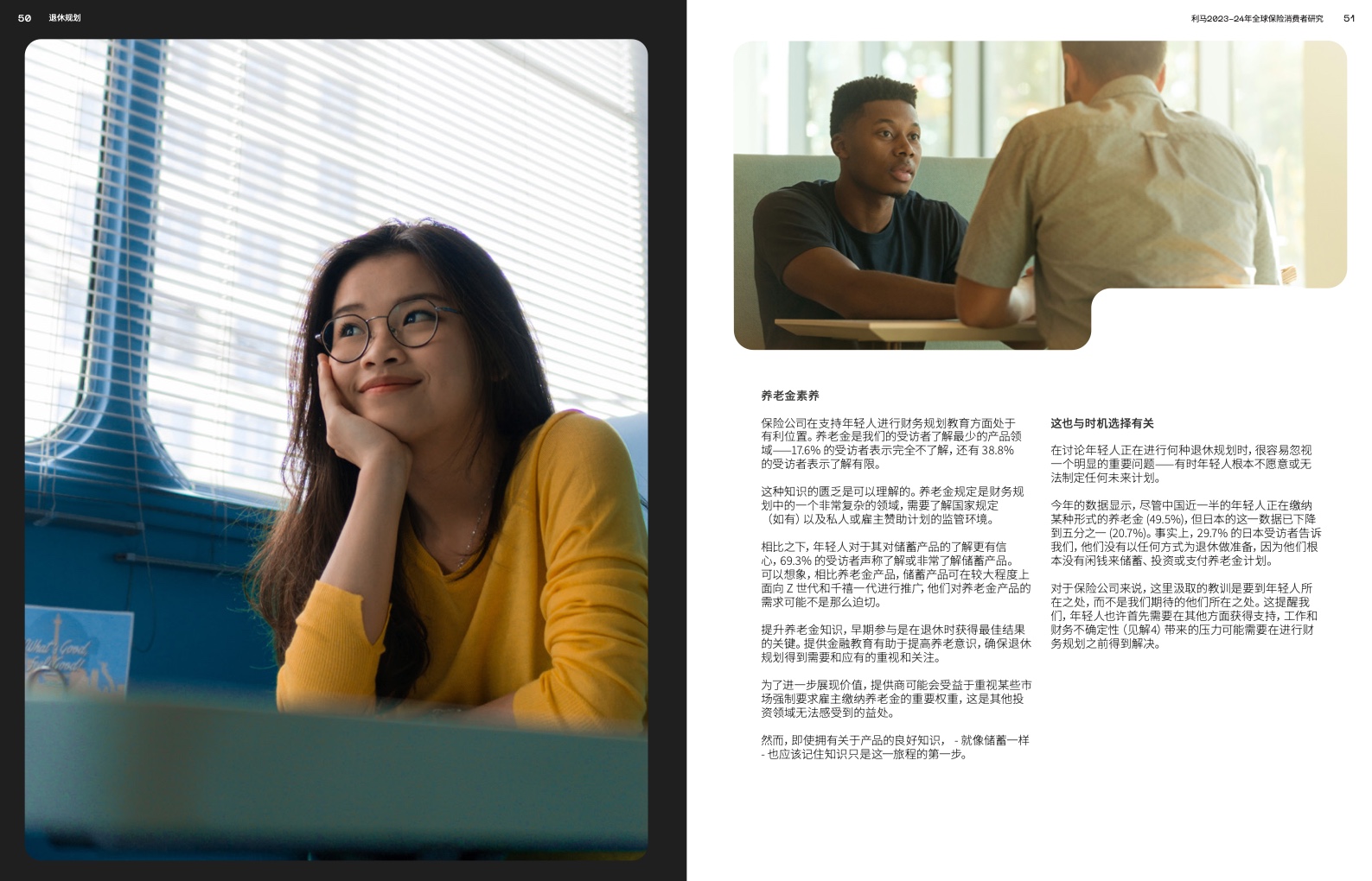 超过一半的受访者声称对人寿与健康保险 (58.9%) 以及房屋与汽车保险 (57.3%) 有良好或非常好的了解。将这些数字放在具体情形中,人们对保险产品的认知低于对储蓄和银行业务的了解,但远高于对养老金和投资等更专业领域的了解。