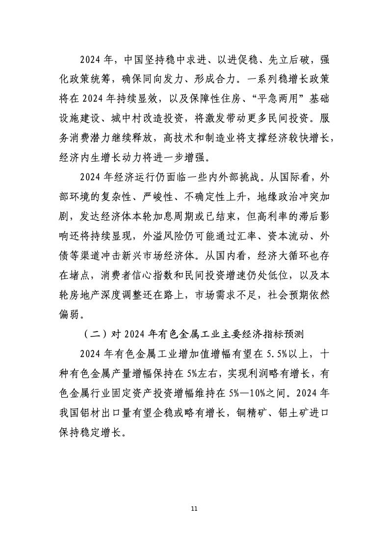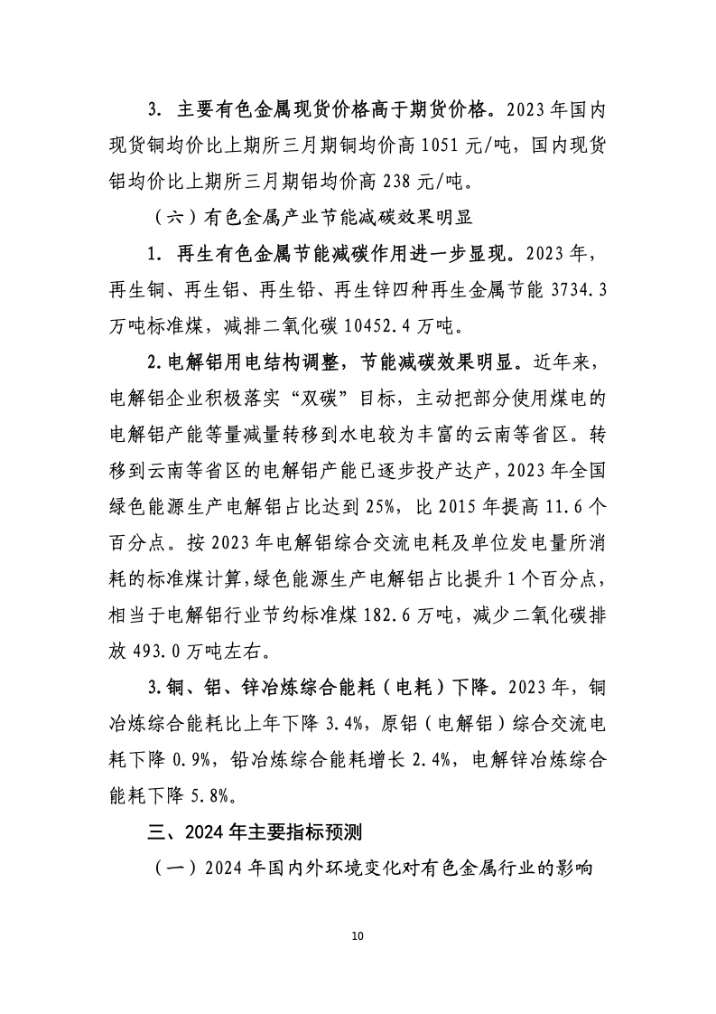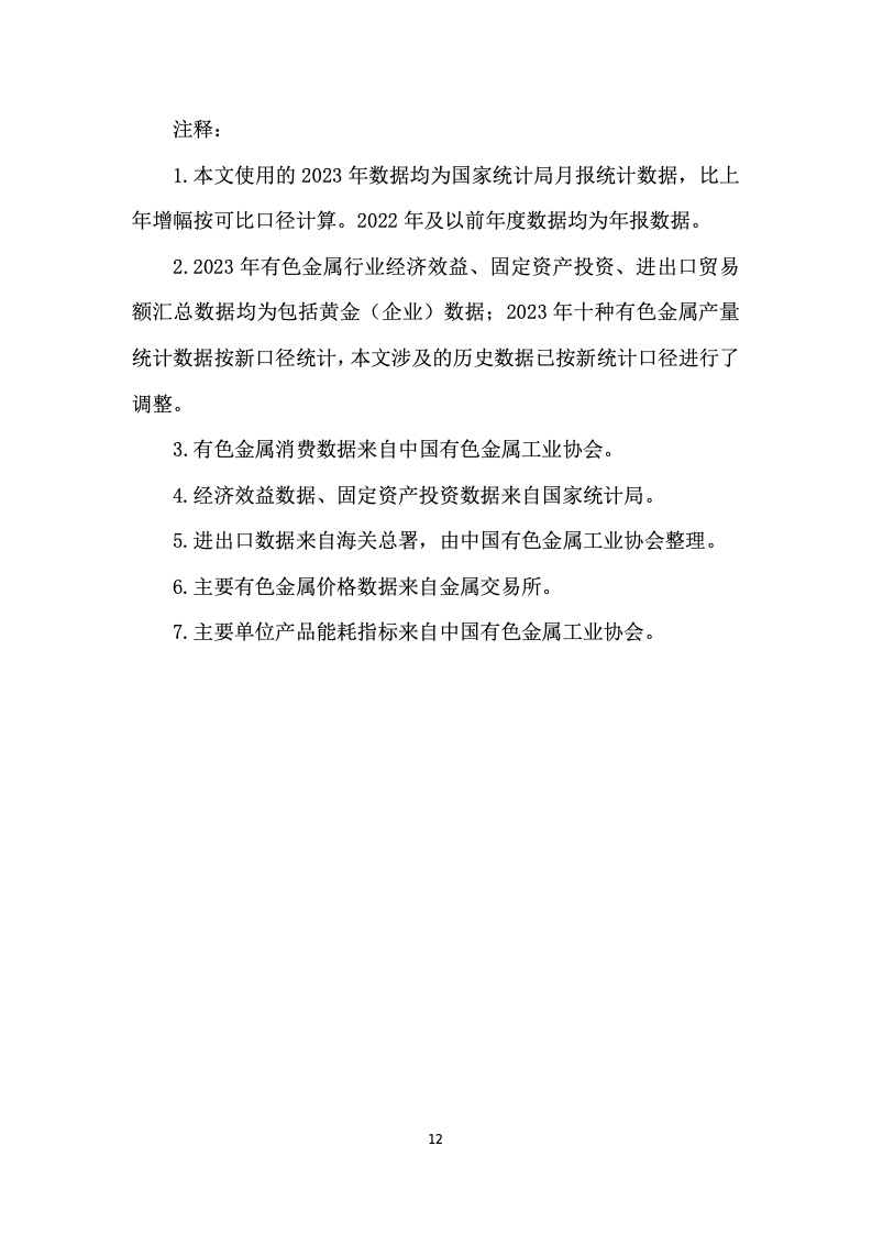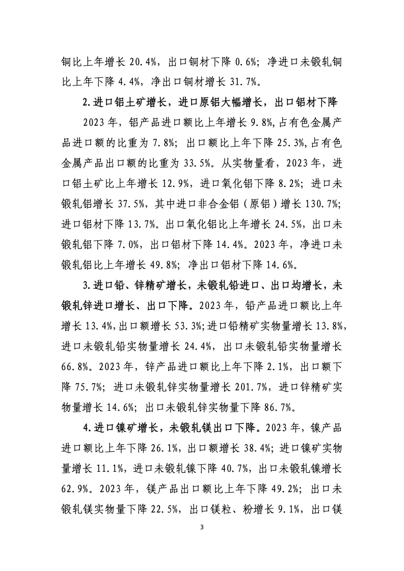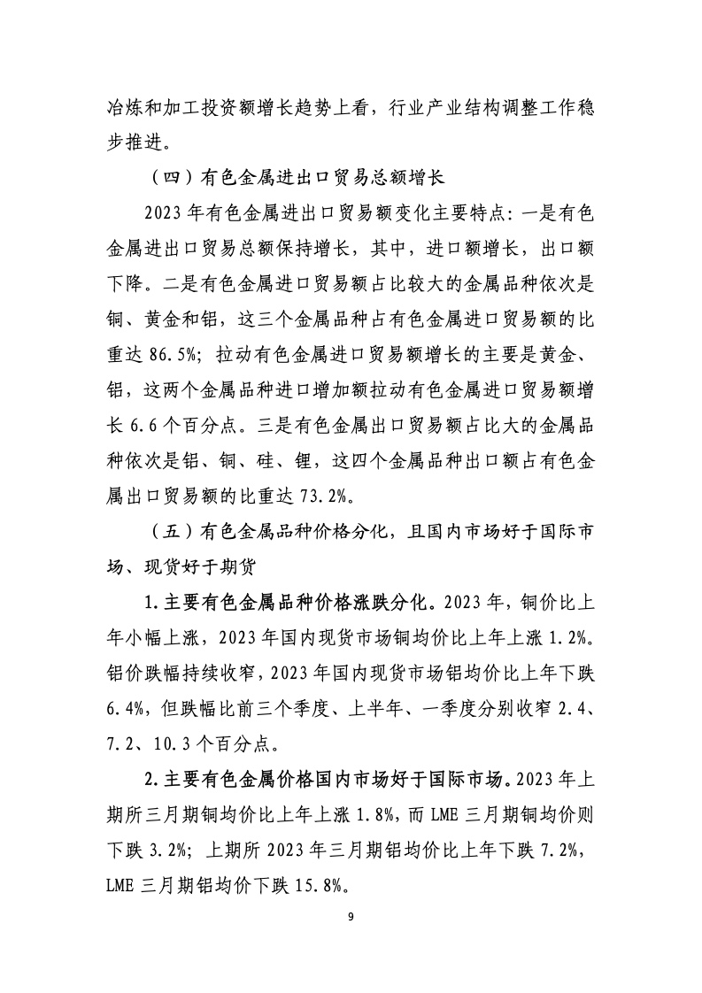 2023 年,中国精炼铜消费量比上年增长 7.8%,两年年均增长 6.3%;原铝消费量增长 7.9%,两年年均增长 4.1%。