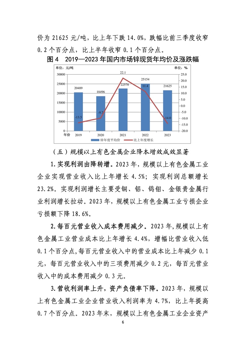 2023 年,规模以上有色金属工业增加值比上年增长 7.4%,增幅比上年加快 2.2 个百分点,比全国规模以上工业增加值增幅快 2.8 个百分点。其中,有色金属冶炼和压延加工业增加值比上年增长 8.8%。新冠疫情以来,规模以上有色金属企业工业增加值呈现出稳定回升的态势,2020 年增长 2.1%、2021 年增长 3.1%、2022 年增长5.2%、2023 年增长 7.4%。