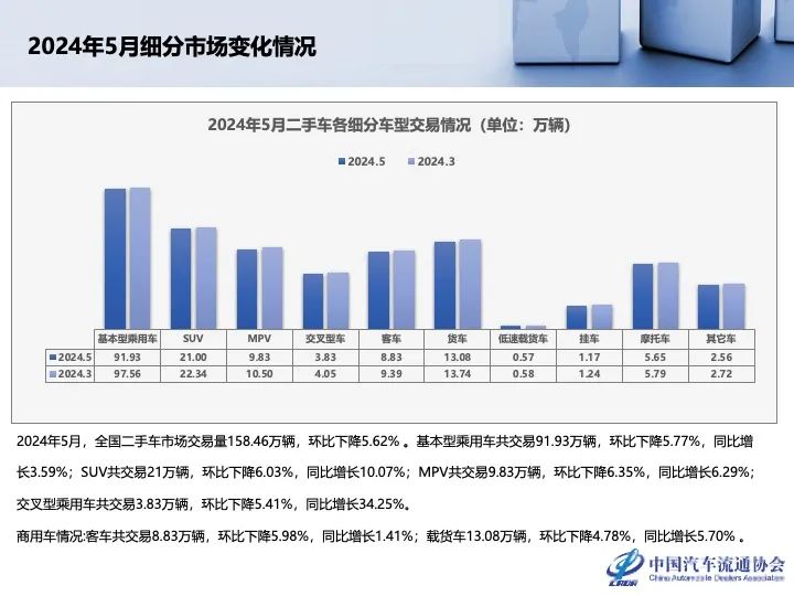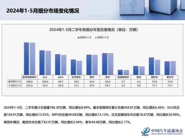 中国汽车流通协会:2024年5月全国二手车市场深度分析 更多阅读:中国汽车流通协会:2023年3月全国二手车市场深度分析中国汽车流通协会:2020二手车经销商百强排行榜中国汽车流通协会:2020年第一季度豪华品牌新增授权4s店57家 退网4s店41家中国汽车流通协会:2022年4月中国汽车保值率报告中国汽车流通协会:2020年4月中国进口汽车市场月报中国汽车流通协会:2020年3月份国内狭义乘用车市场销量达104.5万辆 同比下降40.4%中国汽车流通协会: 2024年7月二手车市场简析中国汽车流通协会:2024年6月全国二手车市场深度分析中国汽车流通协会:2024年5月全国二手车市场深度分析中国汽车流通协会:2024年4月全国二手车市场深度分析中国汽车流通协会:2024年4月全国二手车市场深度分析中国汽车流通协会: 2023年9月全国二手车市场深度分析中国汽车流通协会:2023年6月及半年二手车深度分析中国汽车流通协会:2023年6月二手车市场简析中国汽车流通协会:2023年5月份中国二手车经理人指数为48.1%