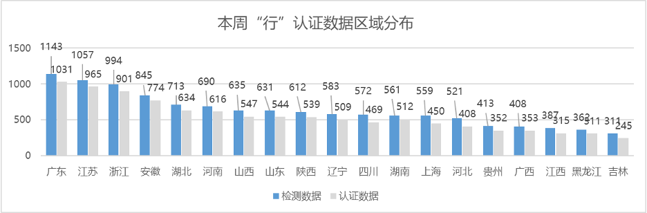 2024年6月第四周,上报 “行”认证统计数据中基于国家标准检测车辆为11997台,其中符合“行”认证数据为10475台(占比约87%),符合团标数据为6912台(占比约57%),本周上报量较上周增长约11%,较2023年同期环比减少约4%,车况数据质量较上周表现略降。
