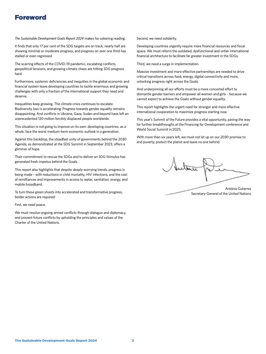 联合国秘书长古特雷斯表示,这份报告强调,当前迫切需要更有力、更有效的国际合作,才能从现在开始取得最大进展。