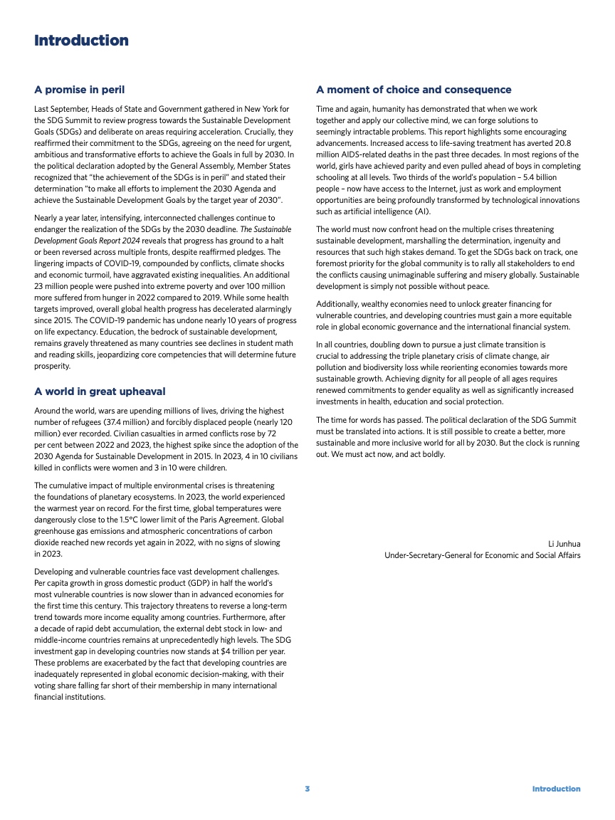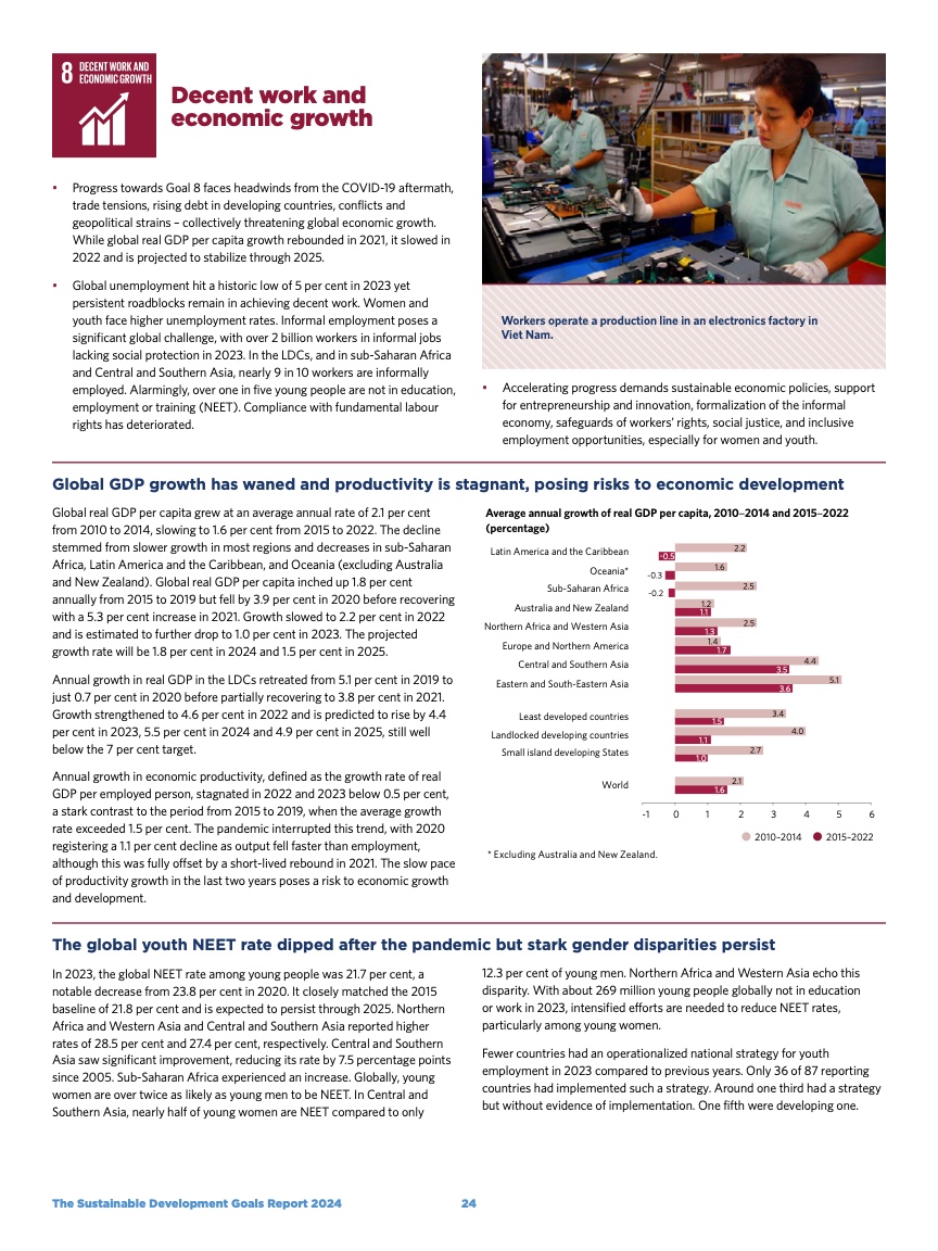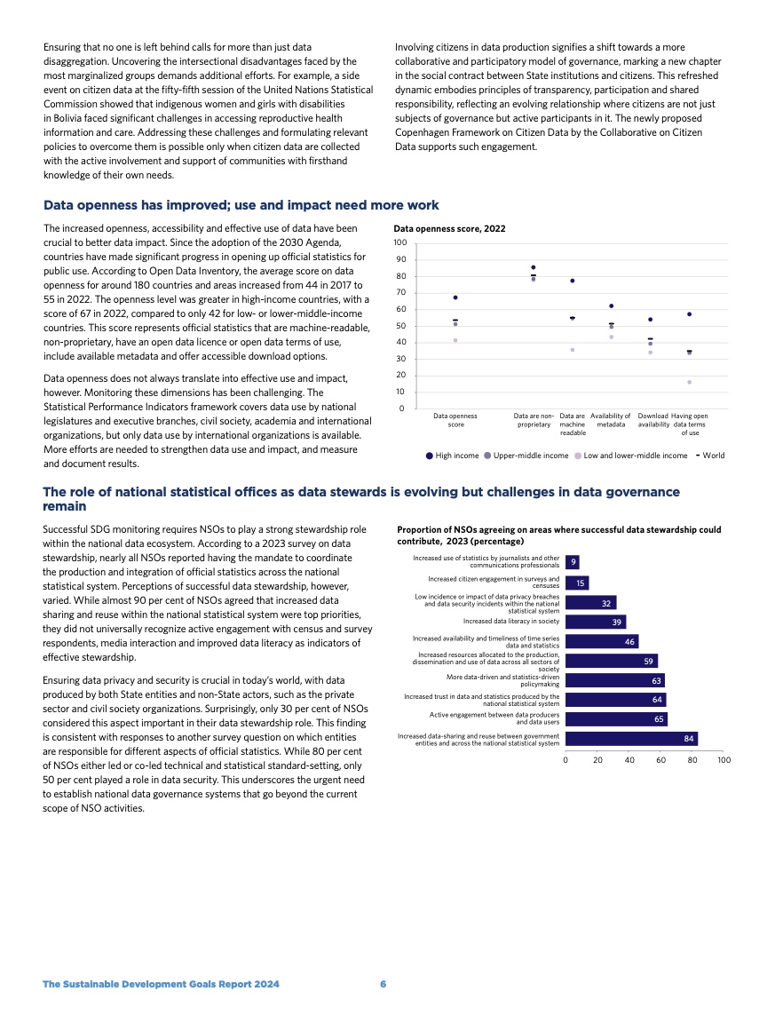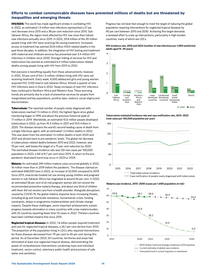 《2024 年可持续发展目标报告》 显示,可持续发展目标中仅有17%的目标目前进展顺利,近一半的目标进展甚微或一般,超过三分之一的目标停滞不前或出现倒退。2019新冠大流行的影响挥之不去,冲突不断升级,地缘政治紧张局势和日益严重的气候混乱严重阻碍了这些目标的进展。