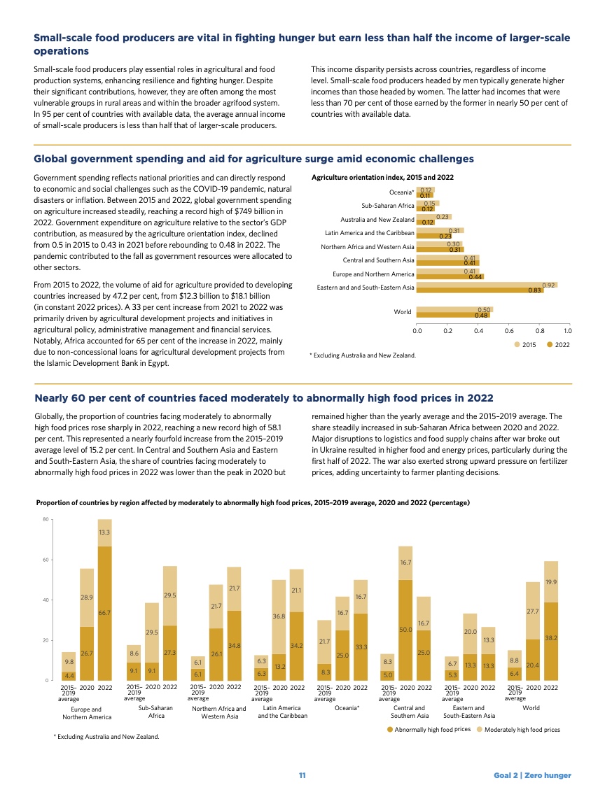 2022年,近60%的国家面临中度至异常高的粮食价格。