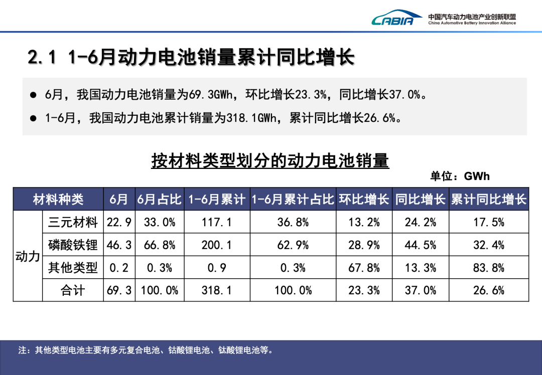 1-6月,我国动力和其他电池累计产量为430.0GWh,累计同比增长36.9%。