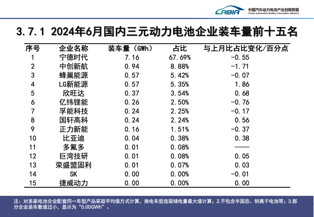 6月,我国动力电池装车量42.8GWh,同比增长30.2%,环比增长7.3%。其中三元电池装车量11.1GWh,占总装车量25.9%,同比增长10.2%,环比增长7.3%;磷酸铁锂电池装车量31.7GWh,占总装车量74.0%,同比增长39.3%,环比增长7.4%。