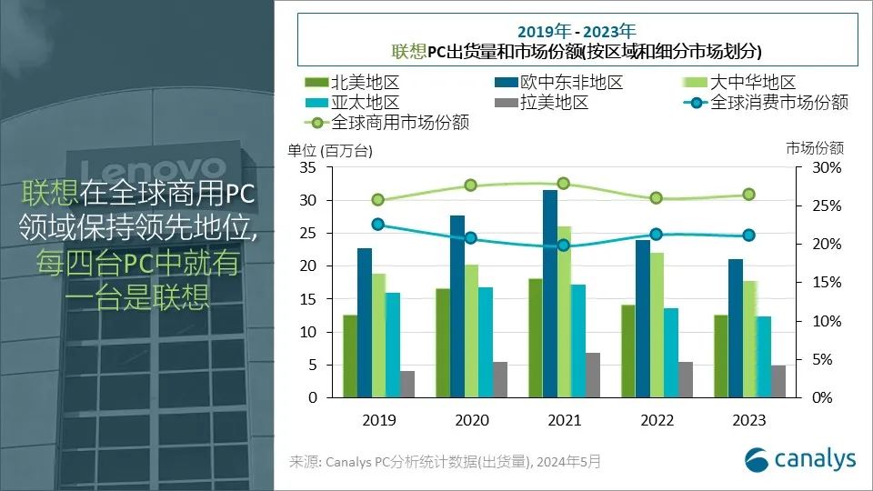 联想凭借其广泛的硬件以及其他产品组合,在商用PC市场上处于有利地位,不可小觑。目前许多客户正在探索AI领域,联想正通过与其庞大的商业客户群的紧密合作,来将对AI产品和服务的兴趣转化为实际采用的需求。