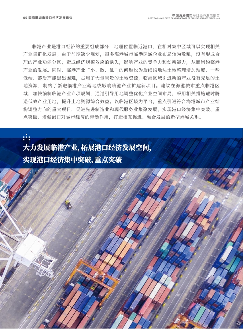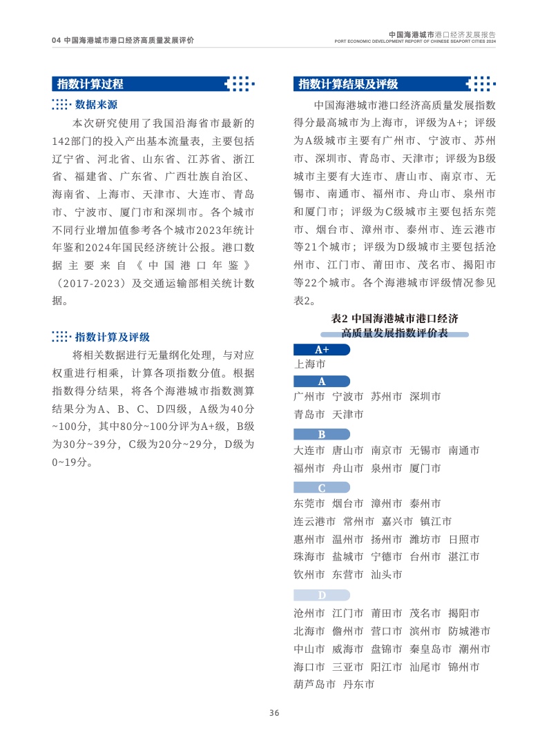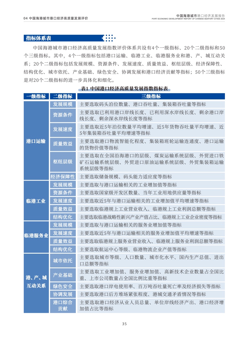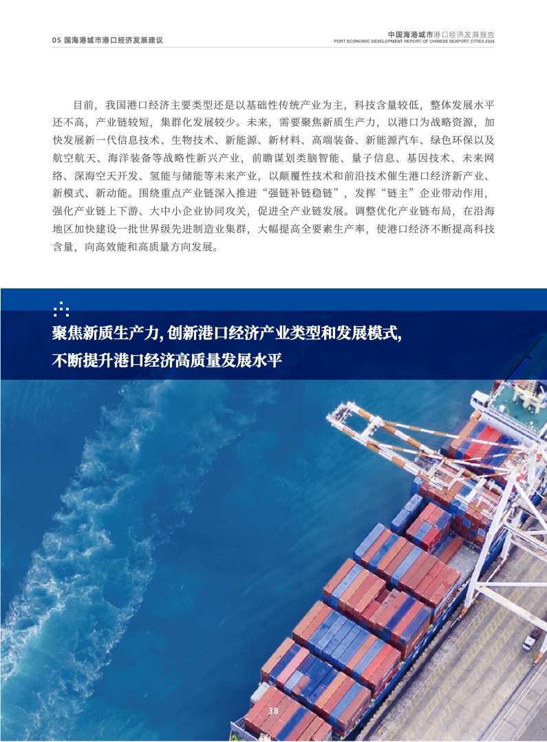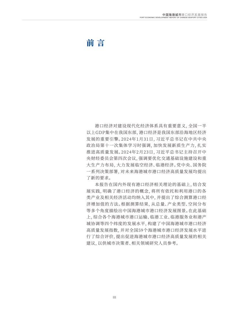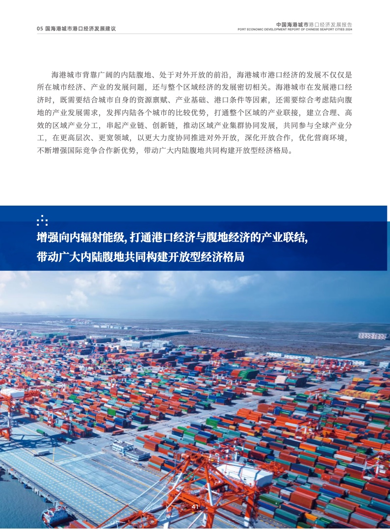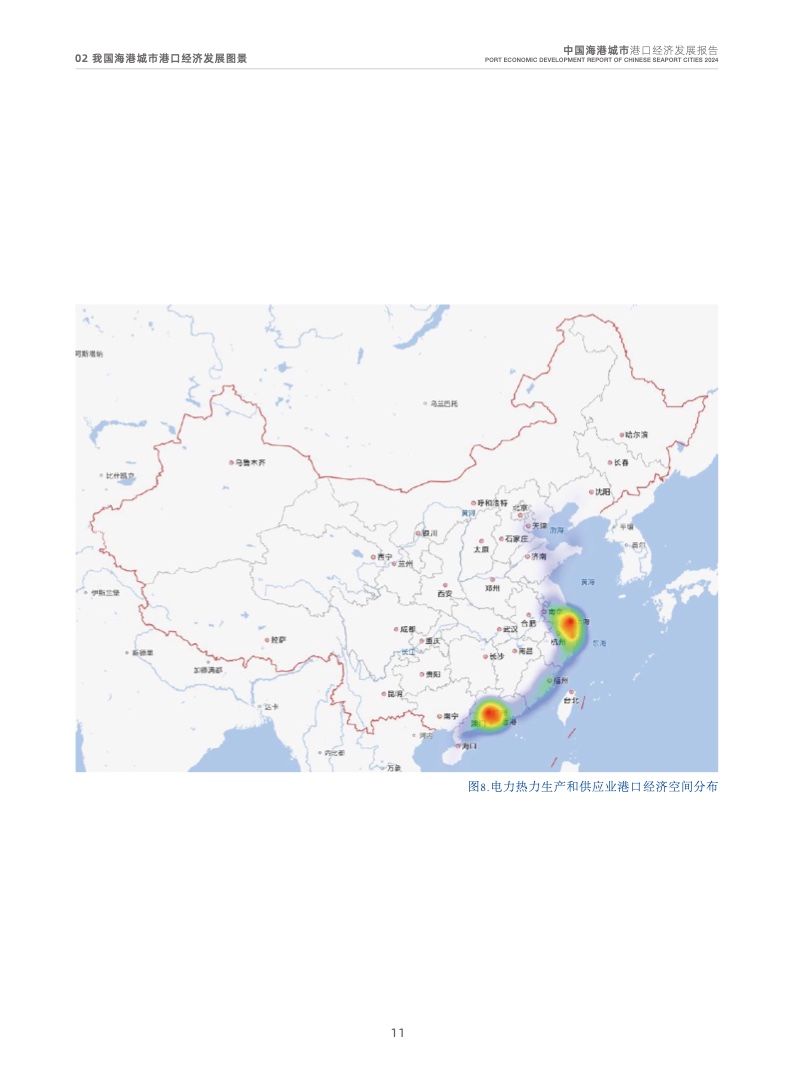 经测算,2023年我国海港城市港口经 济增加值达到6.2万亿元,占到这些城市经 济总量的13.4%,与2022年相比,规模增 长1929亿元。从整体上看,中国海港城市 港口经济呈现“一核、两区、多片”的空 间格局,形成了以上海、苏州等城市群为 “一核”引领,以长三角区域和珠三角区 域为“两区”协同发展,以环渤海区域、 东南沿海区域、西南沿海区域“多片”共 同发展的空间格局。