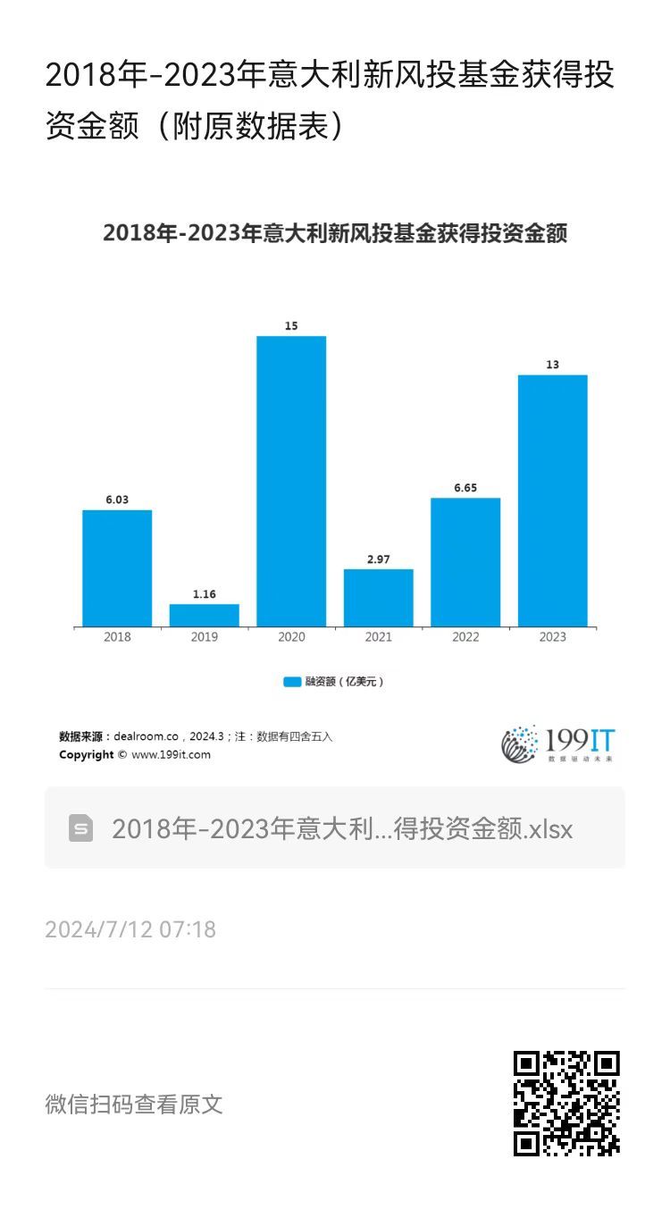 2018年-2023年意大利新风投基金获得投资金额(附原数据表) ​​​