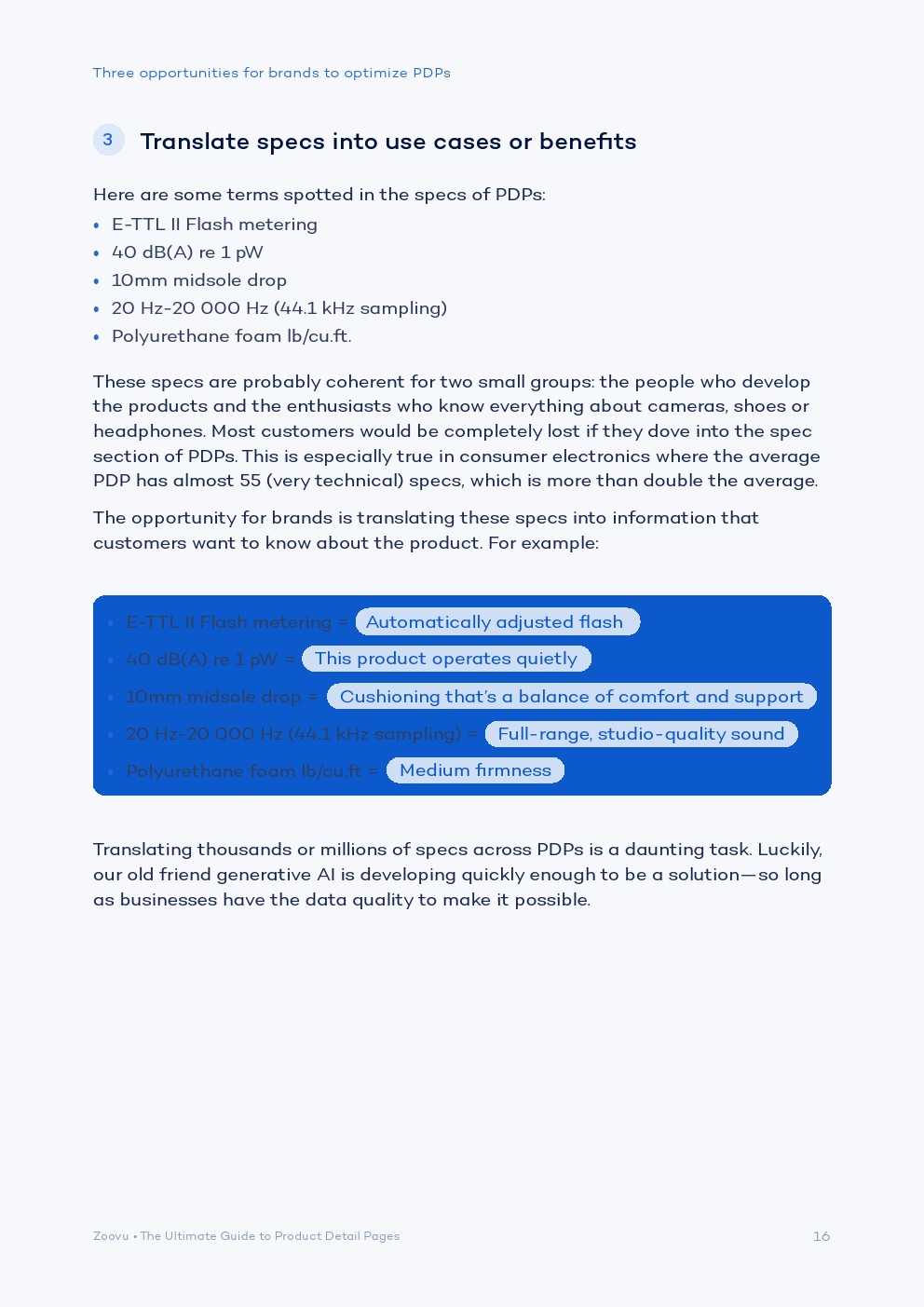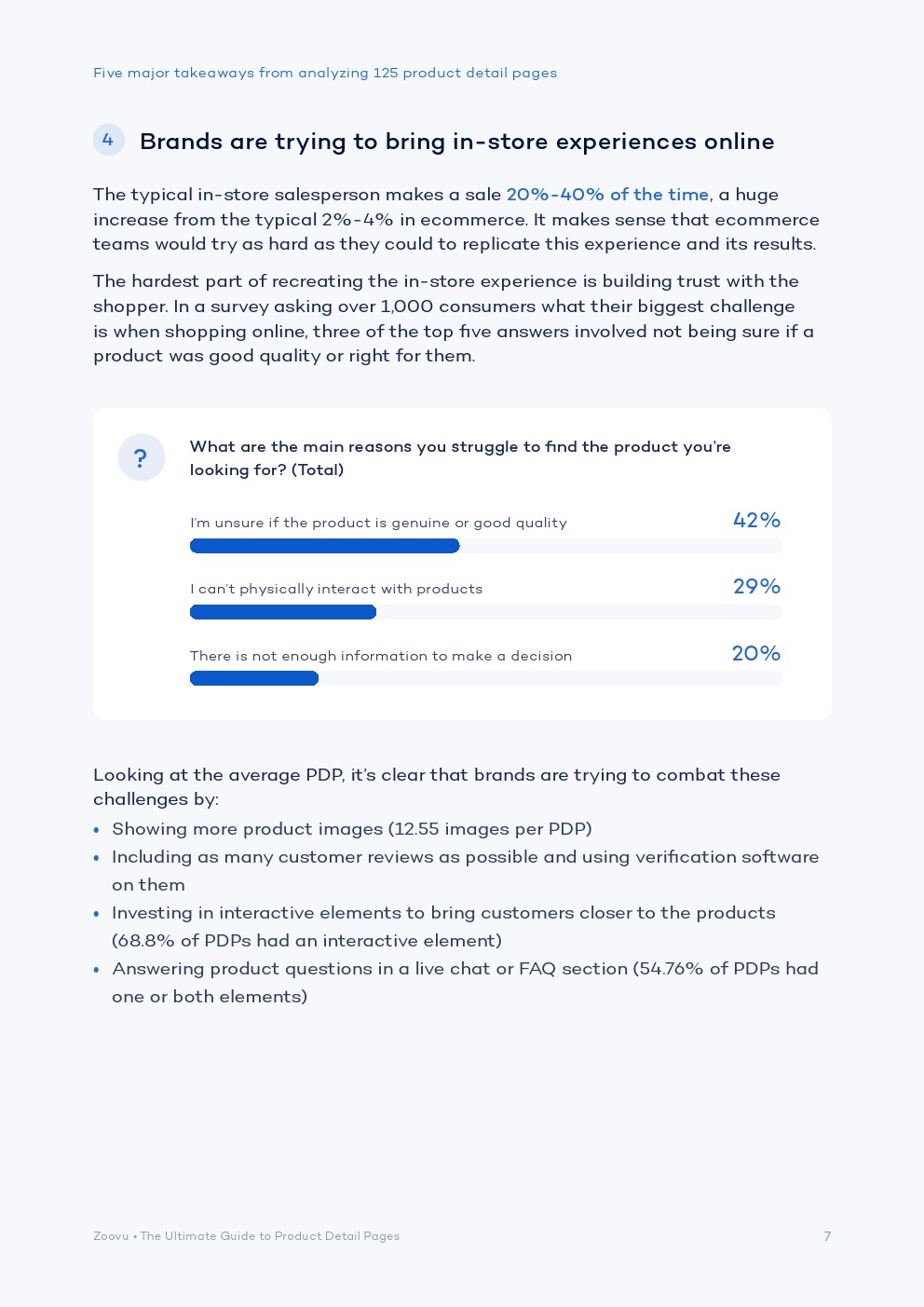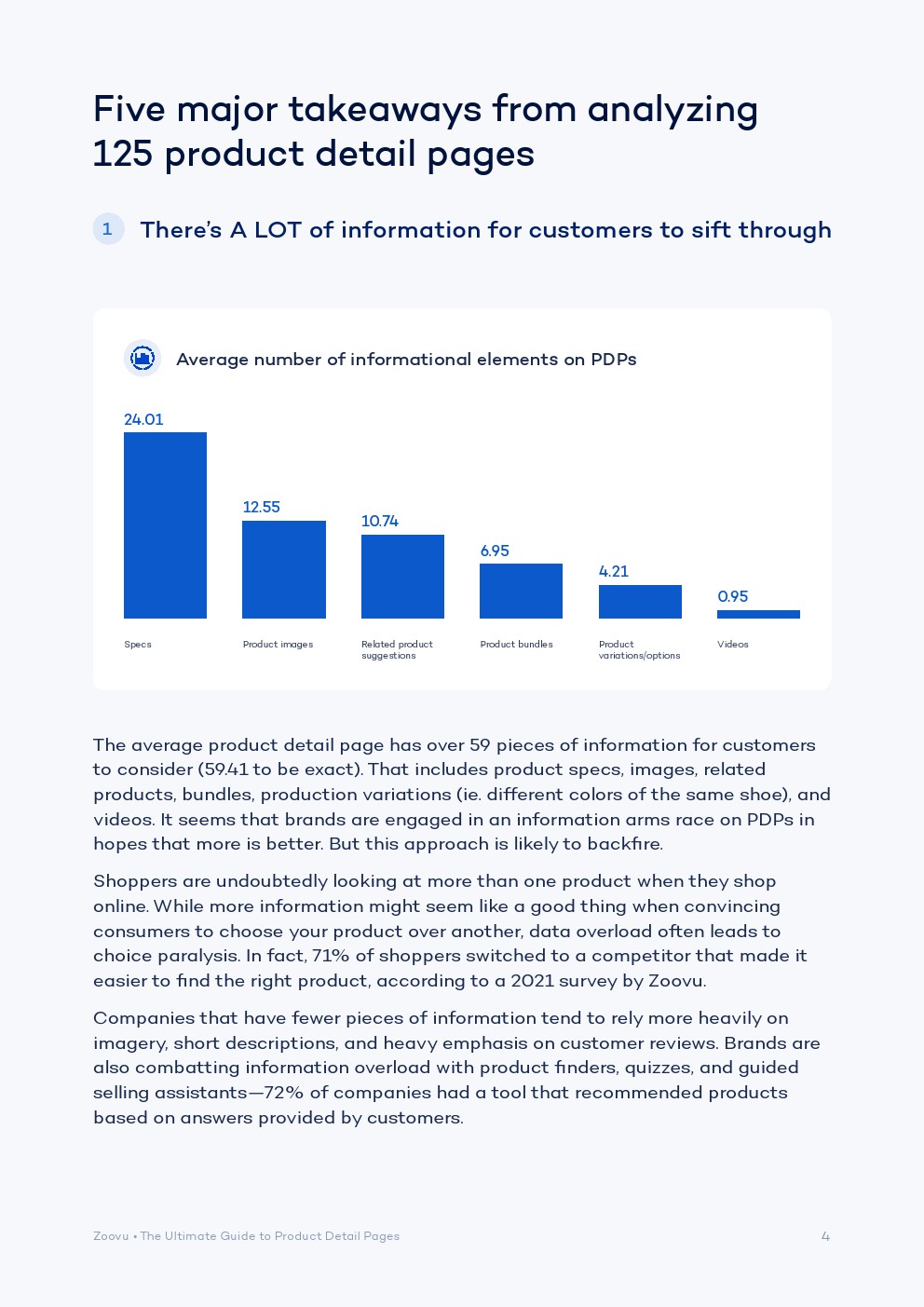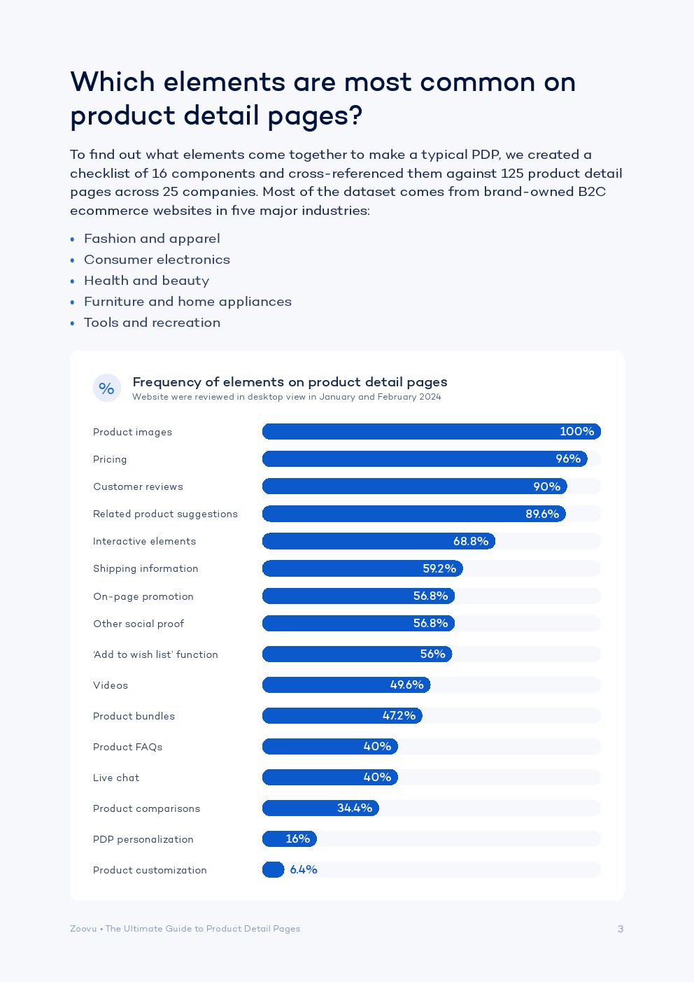 根据Zoovu对5个主要行业的125个品牌B2C电子商务网站的产品详情页面的分析,这些页面在某些方面的体验是正确的,但在其他方面可能还有改进的空间。