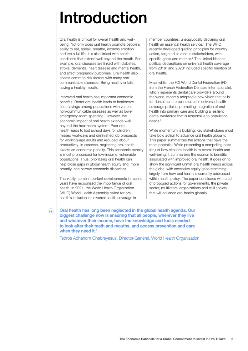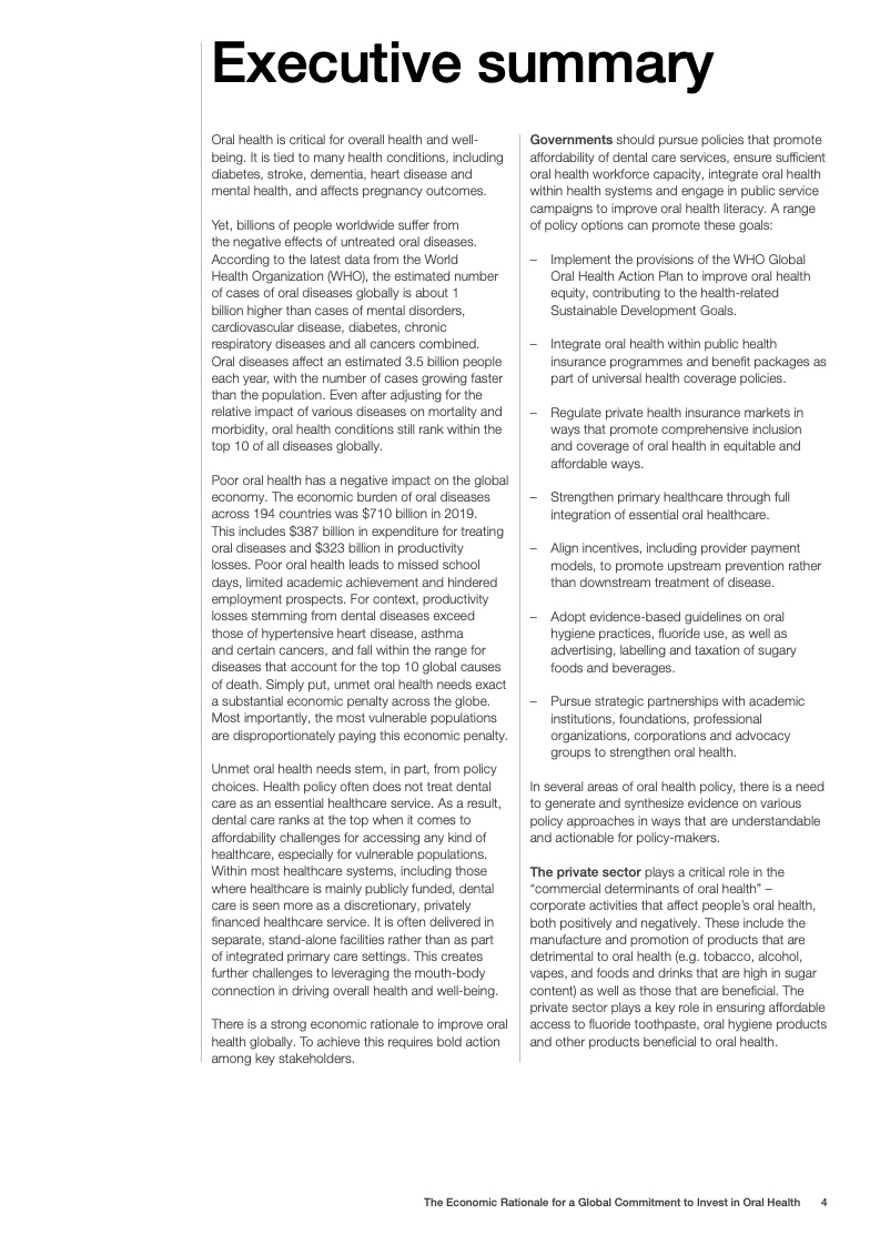 尽管如此,口腔健康仍然是一个被忽视的全球挑战,正对世界上最脆弱的人群产生尤其严重的影响。