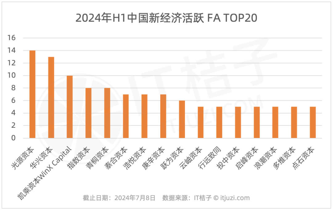 2024 年上半年活跃的新经济投行 / 财务顾问榜上,光源资本与华兴资本分列第一二位。