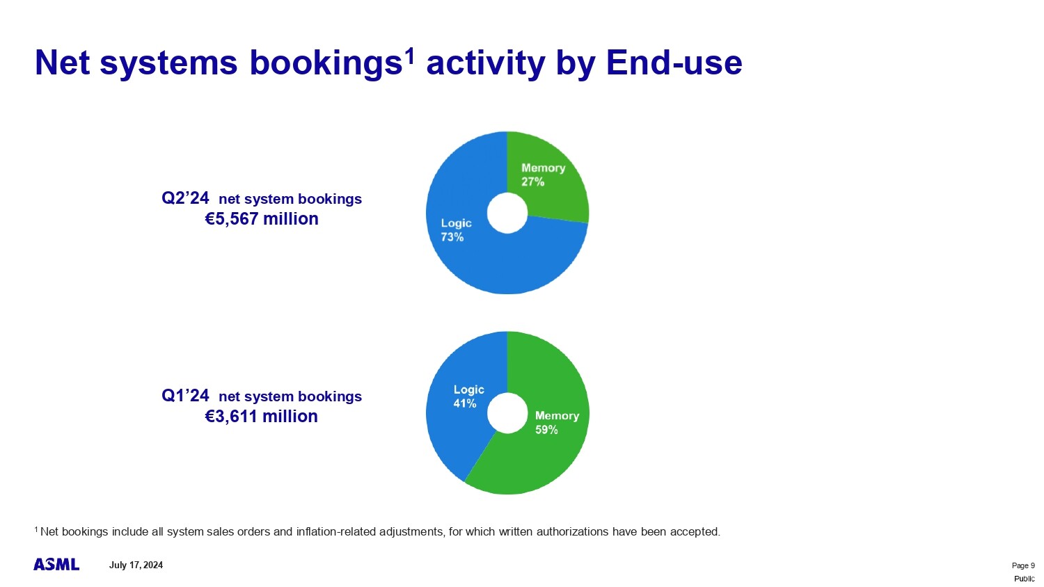 阿斯麦在一份声明中表示,第二季度净销售额为62.4亿欧元,高于市场预期的60亿欧元。预订量环比增长54%,达到55.7亿欧元(约合61亿美元),高于市场预期的44.1亿欧元。