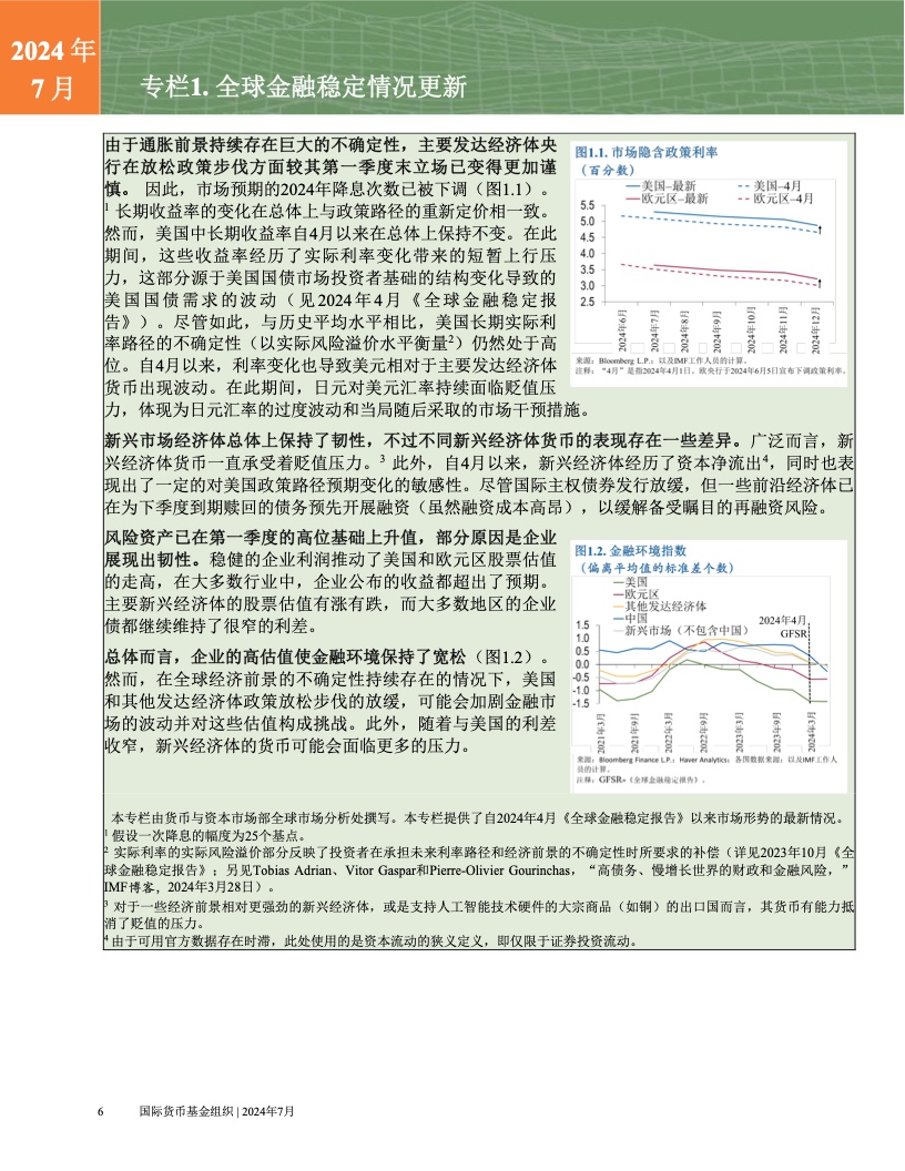 报告表示,长期收益率已总体上行,这与政策路径的重新定价相一致;但企业的高估值使金融环境保持了宽松,大致处于4月《世界经济展望》的水平。然而,收益率的上升很可能给财政纪律带来压力——部分国家无法控制支出或实施了增税,已经使财政纪律承压。