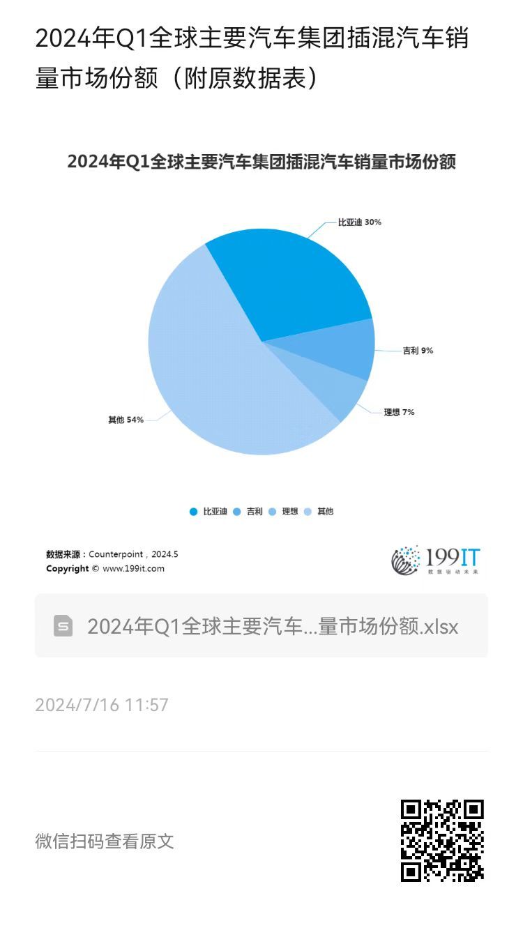 - 2024年Q1全球主要汽车集团插混汽车销量同比(附原数据表)