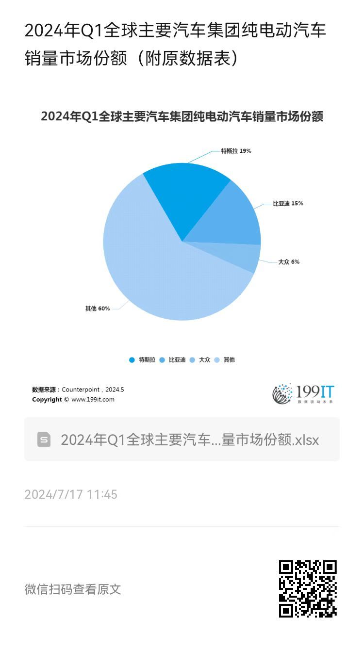 - 2024年Q1全球主要汽车集团纯电动汽车销量同比(附原数据表)