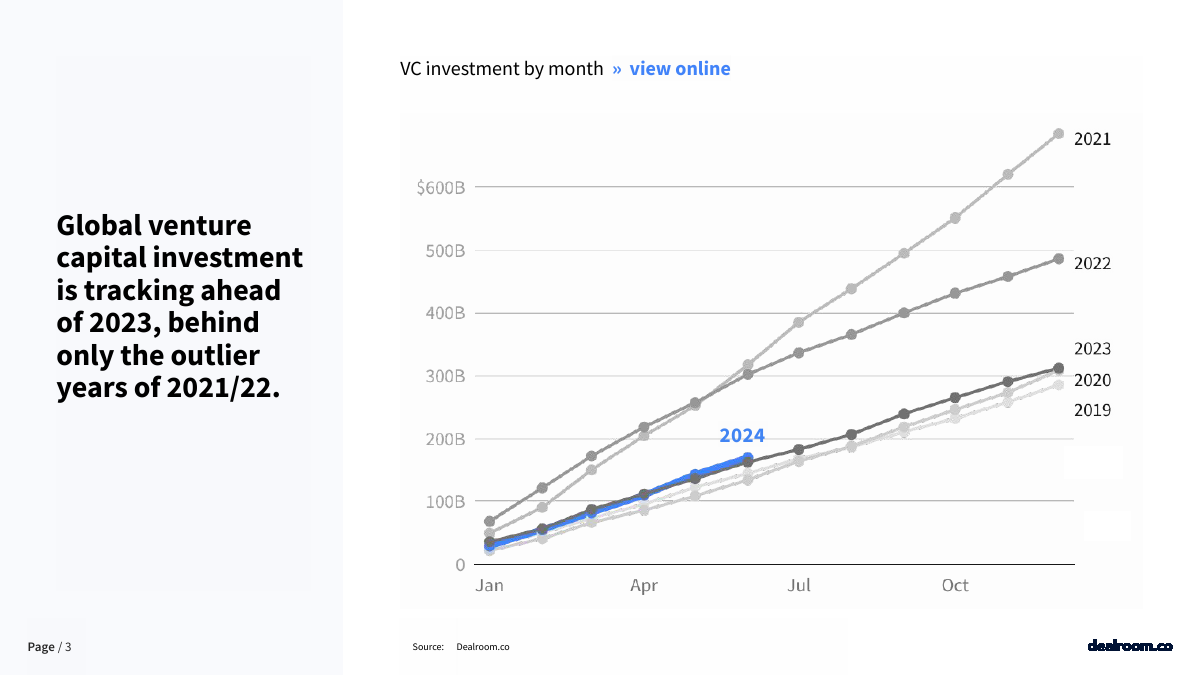 全球风险投资追踪到2023年之前,仅落后于2021/22年的异常年份。