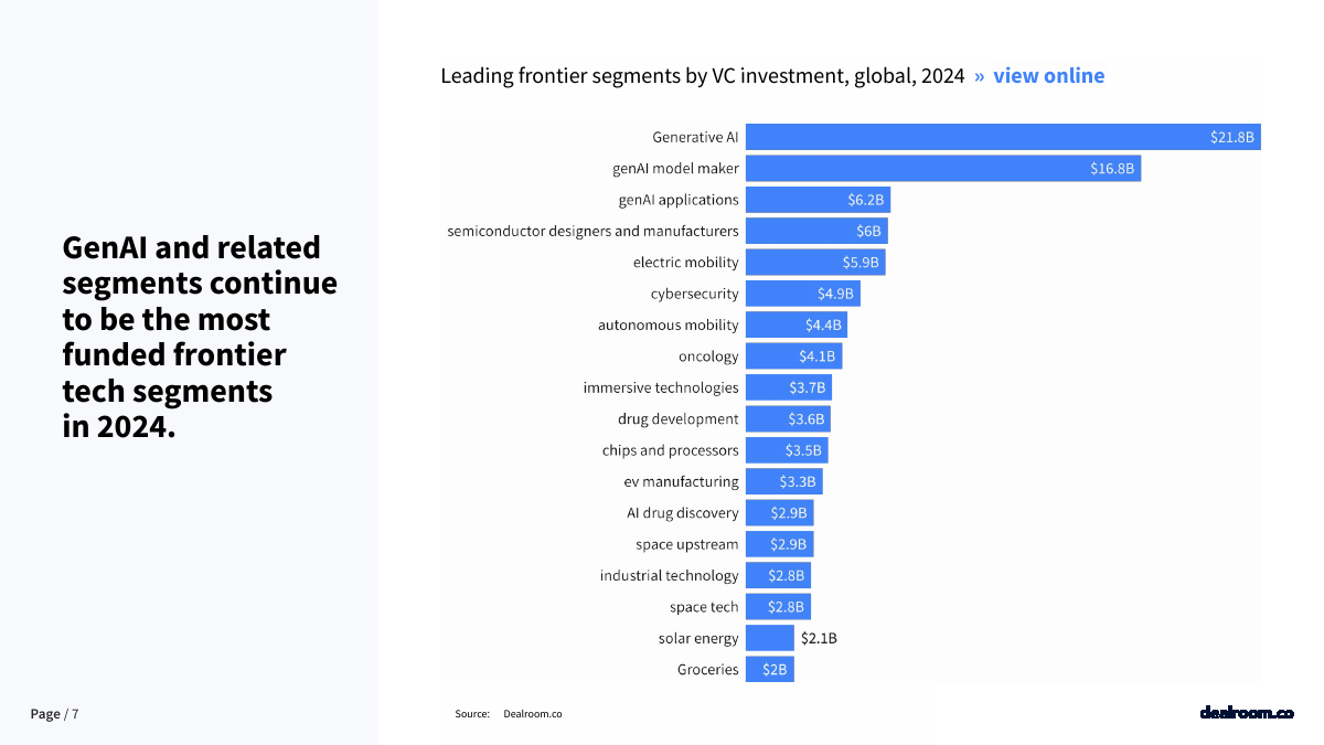 2024年,GenAI和相关领域将继续成为获得投资最多的前沿技术领域。