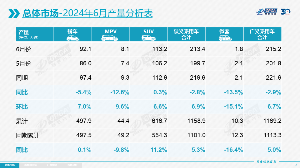 6月新能源乘用车生产达到93.3万辆,同比增长26.6%,环比增长5.8%。2024年1-6月生产458.1万辆,同比增长28.9%。