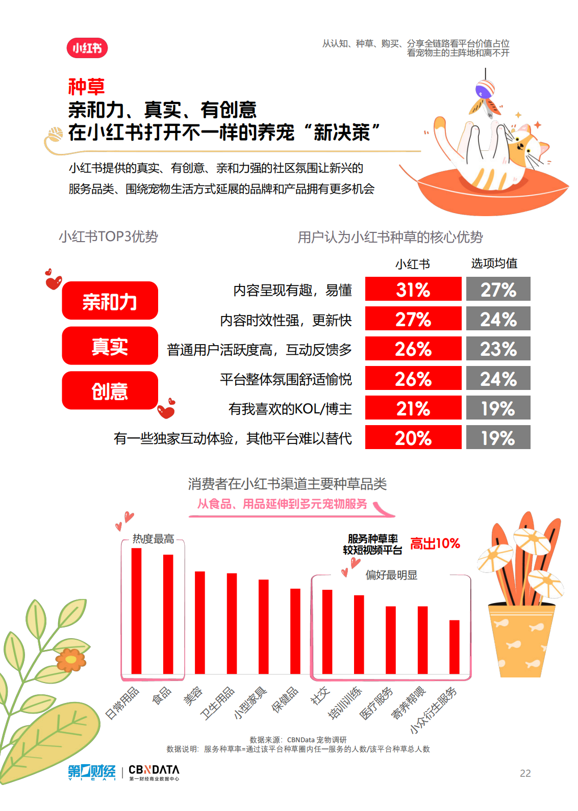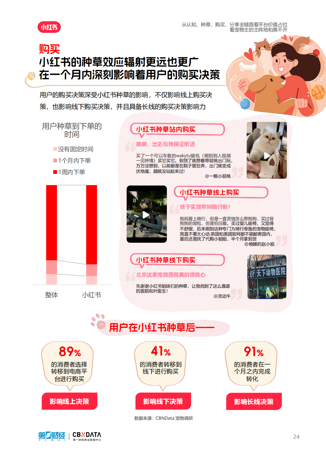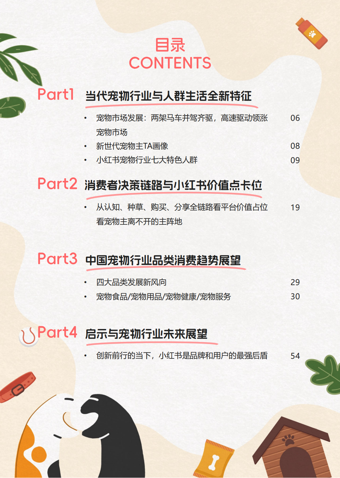 小红书:2024宠物行业洞察报告-宠爱有力量 更多阅读:Common Thread:2022年宠物行业报告狗民网:2019年中国宠物行业白皮书2019年宠物行业线上销售额超过300亿小红书:《2023年“家生活”趋势白皮书》「灵感新风尚」小红书:2023年·运动户外服饰行业用户洞察报告OmniShop:2022年宠物行业趋势「灵感呵护」小红书2023年·洗护行业用户洞察报告小红书:2022年十大生活趋势美妆类产品网络营销,打入年轻市场成为主流小红书数据—闪闪火案例分析—兰蔻极光水魔镜市场情报产品:主流B2C电商网站、O2O平台、社交电商商品、销售等精准数据【馥蕾诗】品牌投放2021小红书数据分析报告不止抖音、B站、小红书,2020年品牌营销新势力还有TA博晓通:2019年4月份小红书综合影响力榜单博晓通:2019年Q1小红书综合影响力榜单
