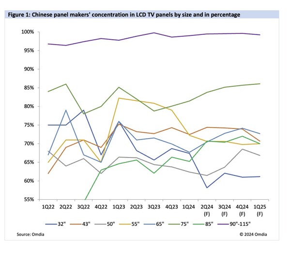 Chinese panel makers’ concentration in LCD TV panels by size and in percentage