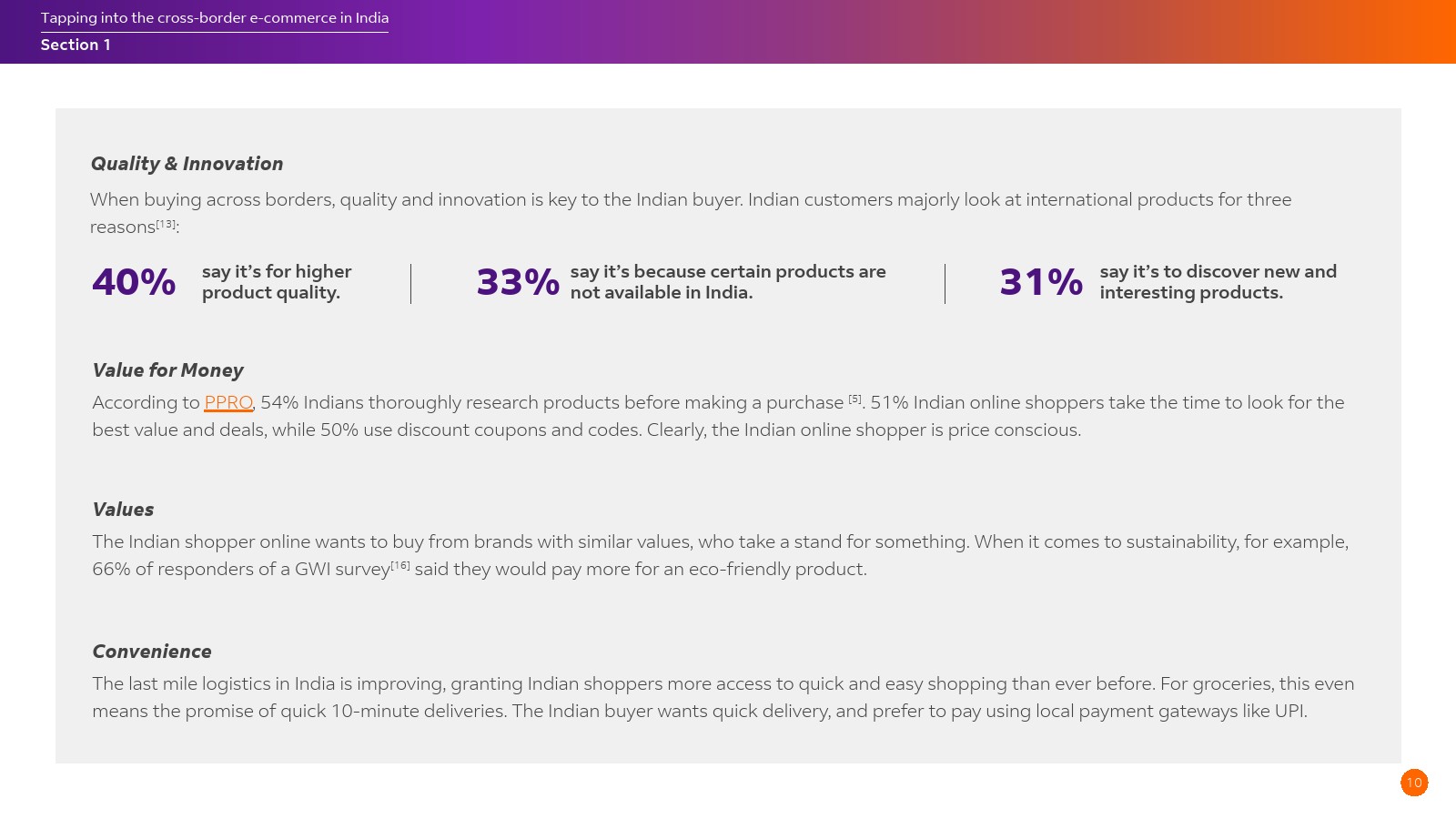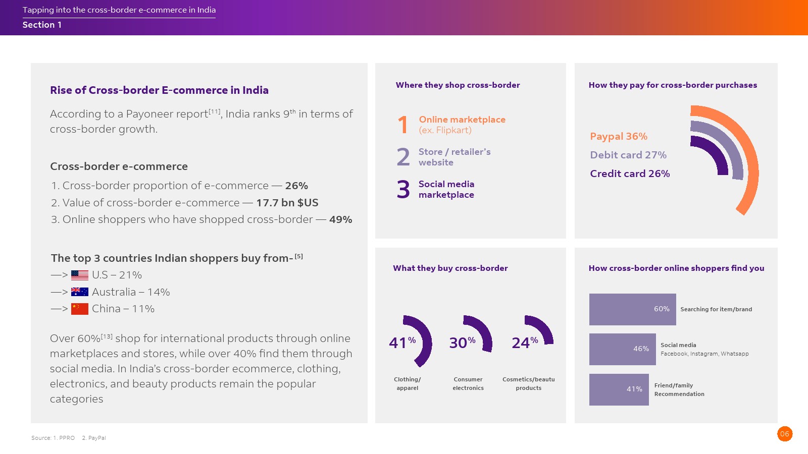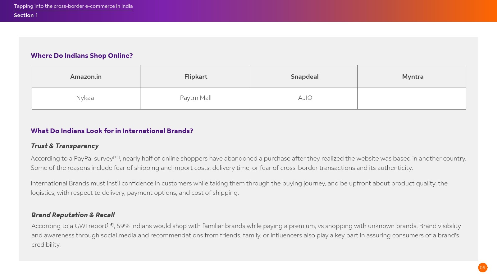 印度人购买最多的国家是美国、中国和澳大利亚。这表明,这些国家的企业已经赢得了印度消费者的信任,这是新企业可以建立的基础。