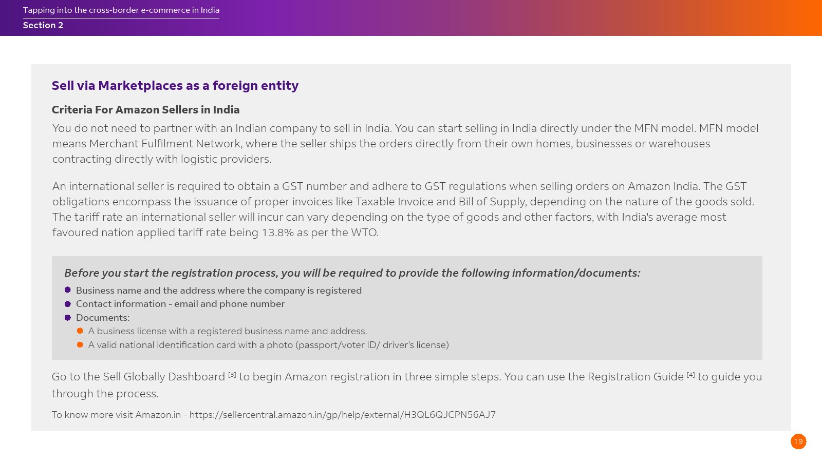 作为一个国际品牌,你可以直接在亚马逊上销售,而无需在印度注册公司。