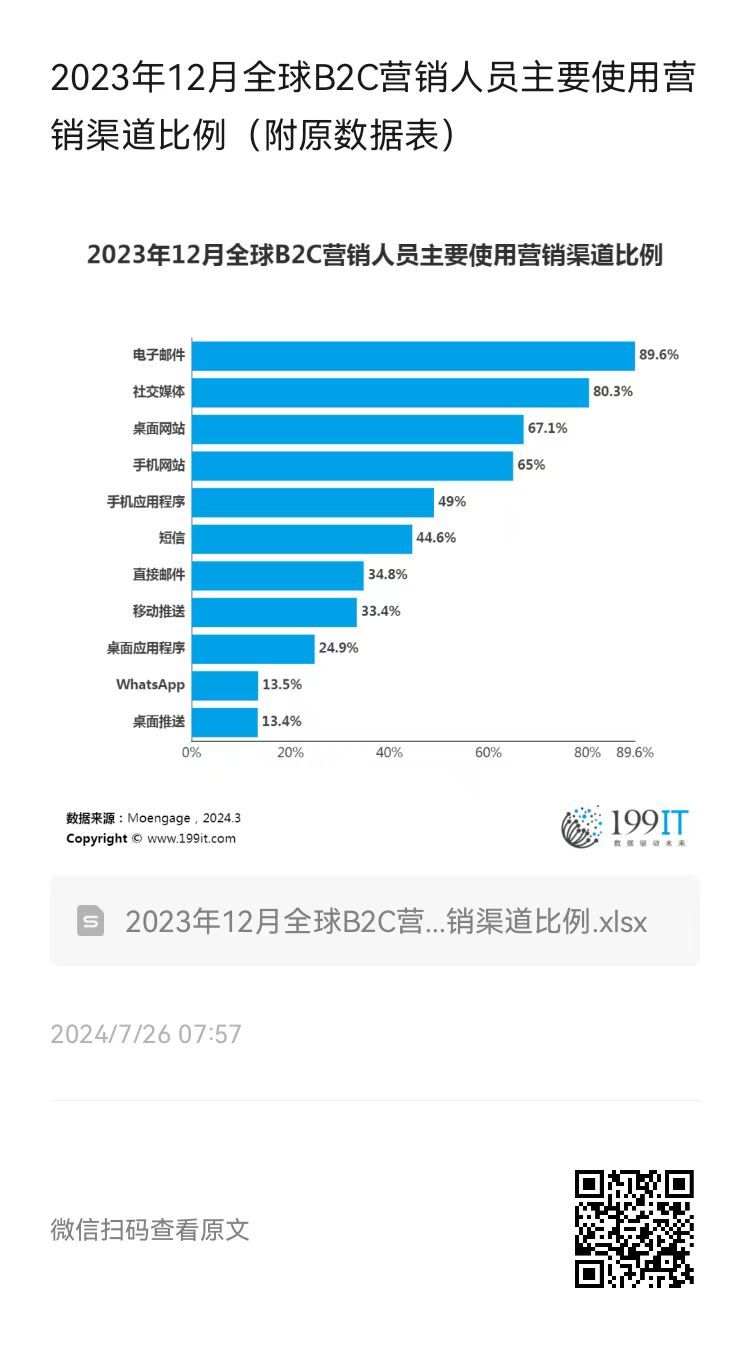 - 2023年12月全球B2C营销人员使用人工智能跨渠道营销比例(附原数据表)