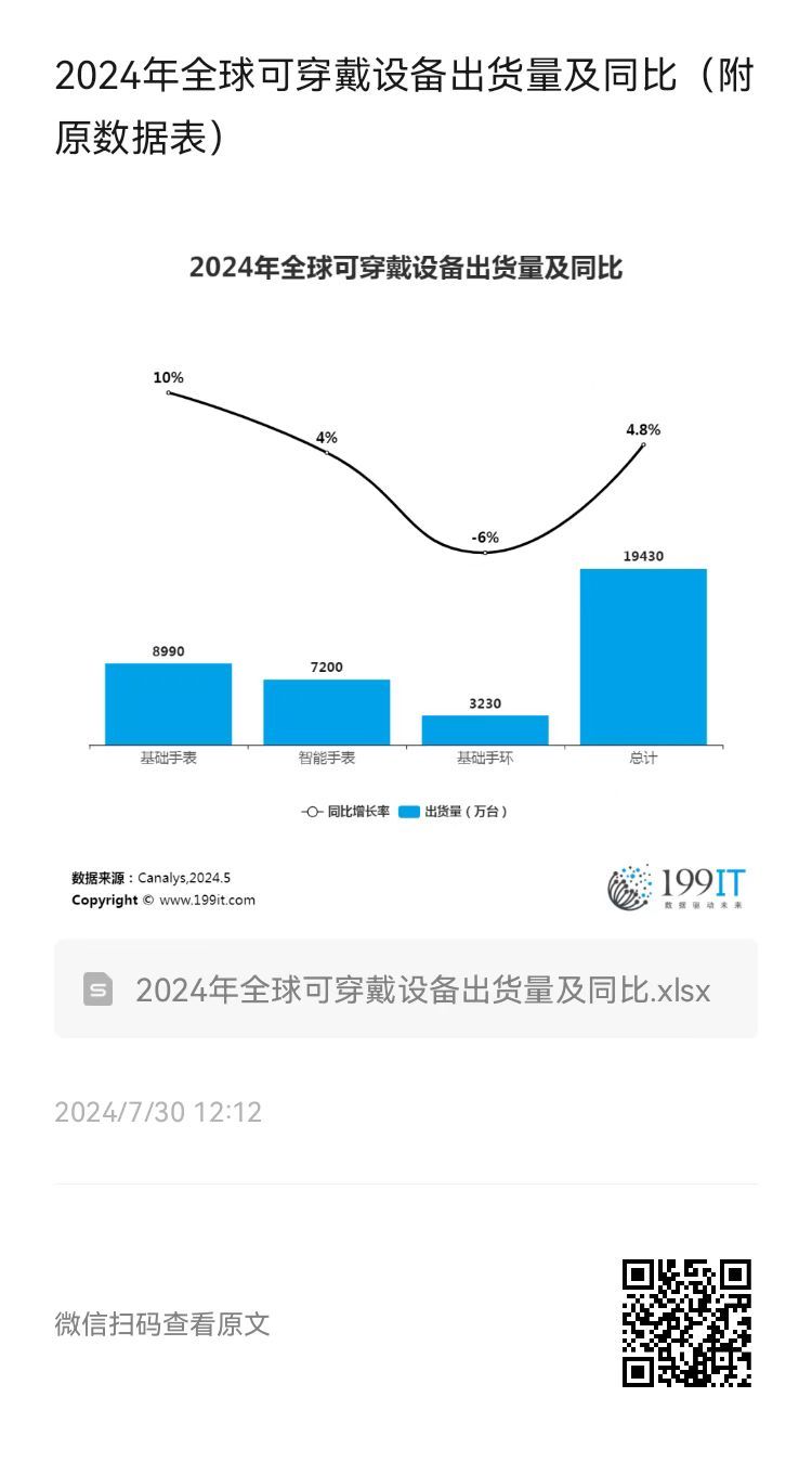 2024年全球可穿戴设备出货量及同比(附原数据表) ​​​