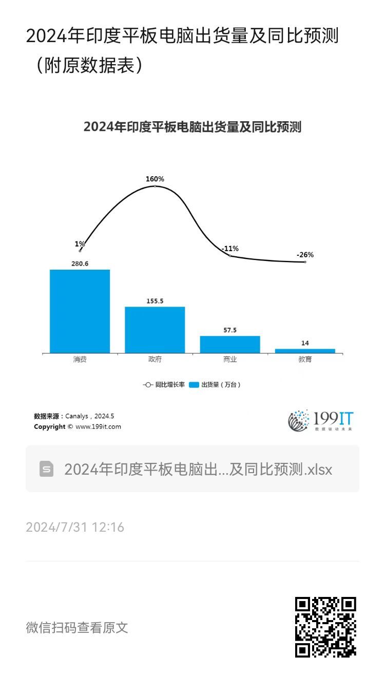 2024年印度平板电脑出货量及同比预测(附原数据表) ​​​